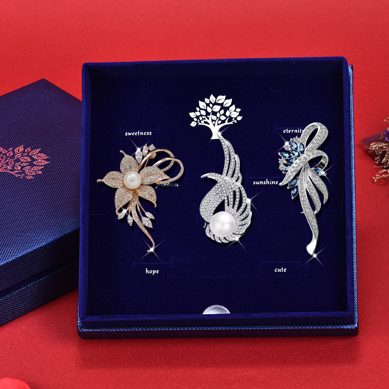Elegant Retro Pearl Brooch Set