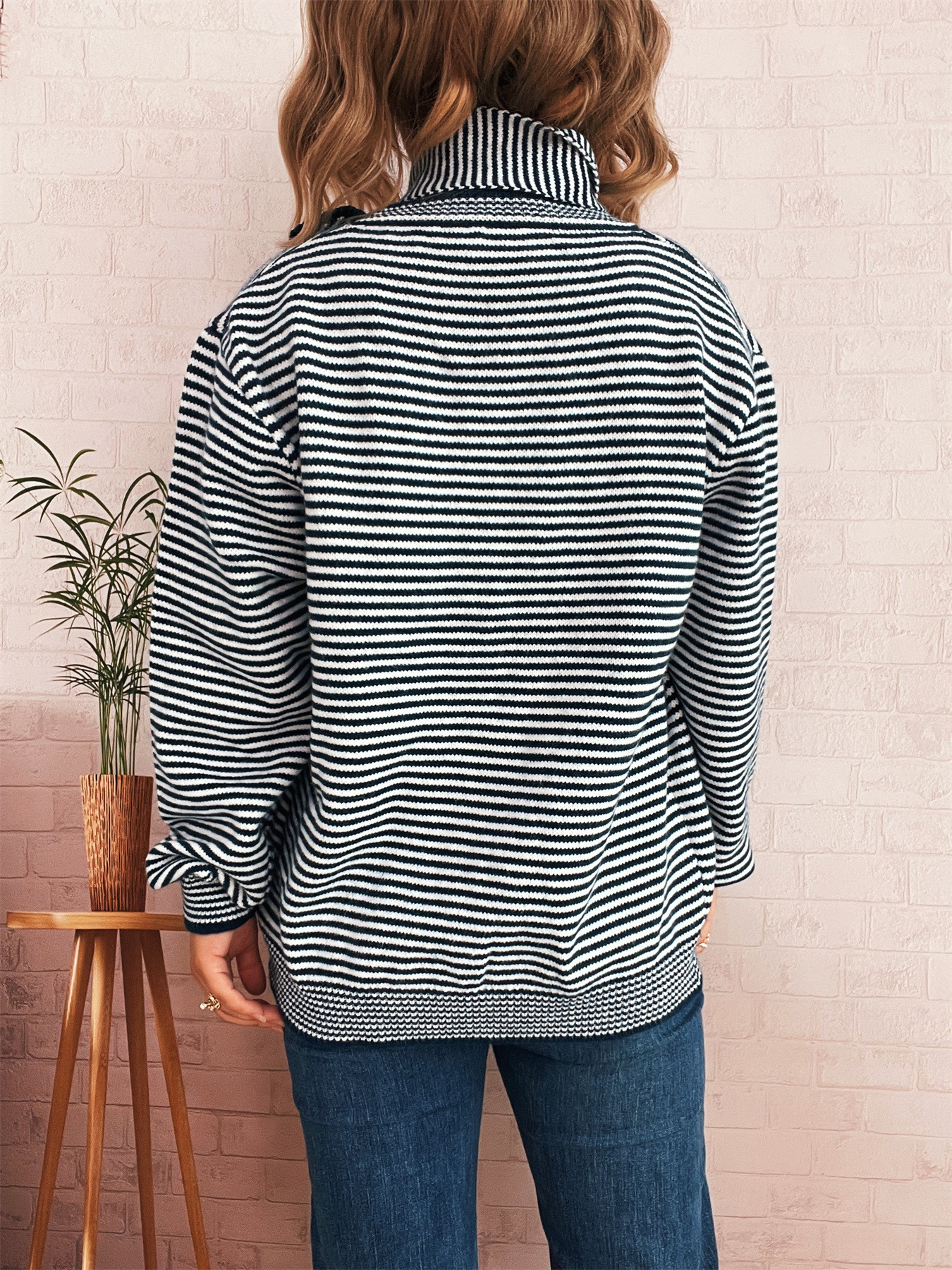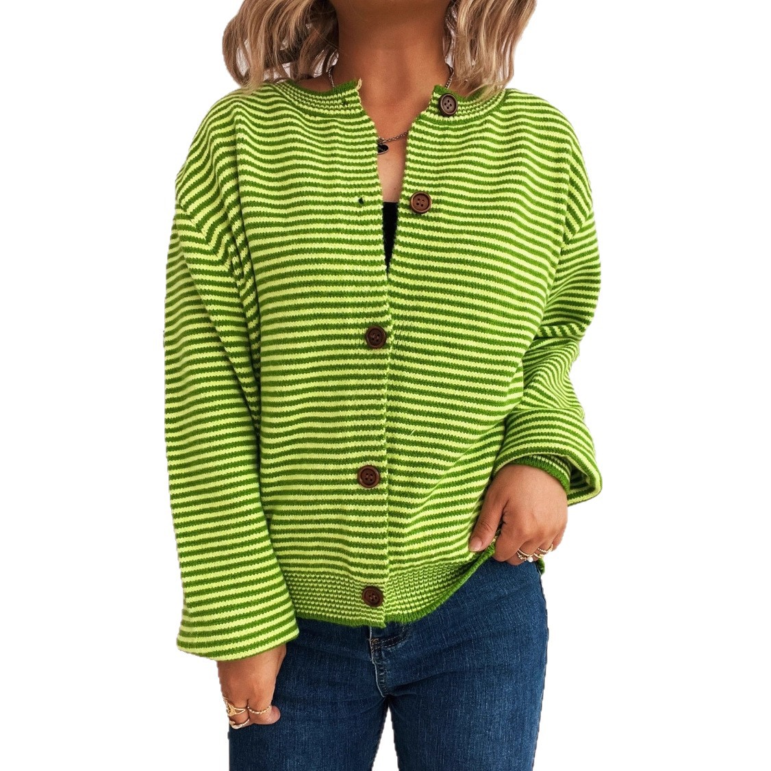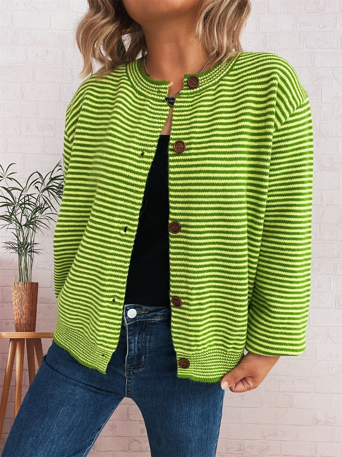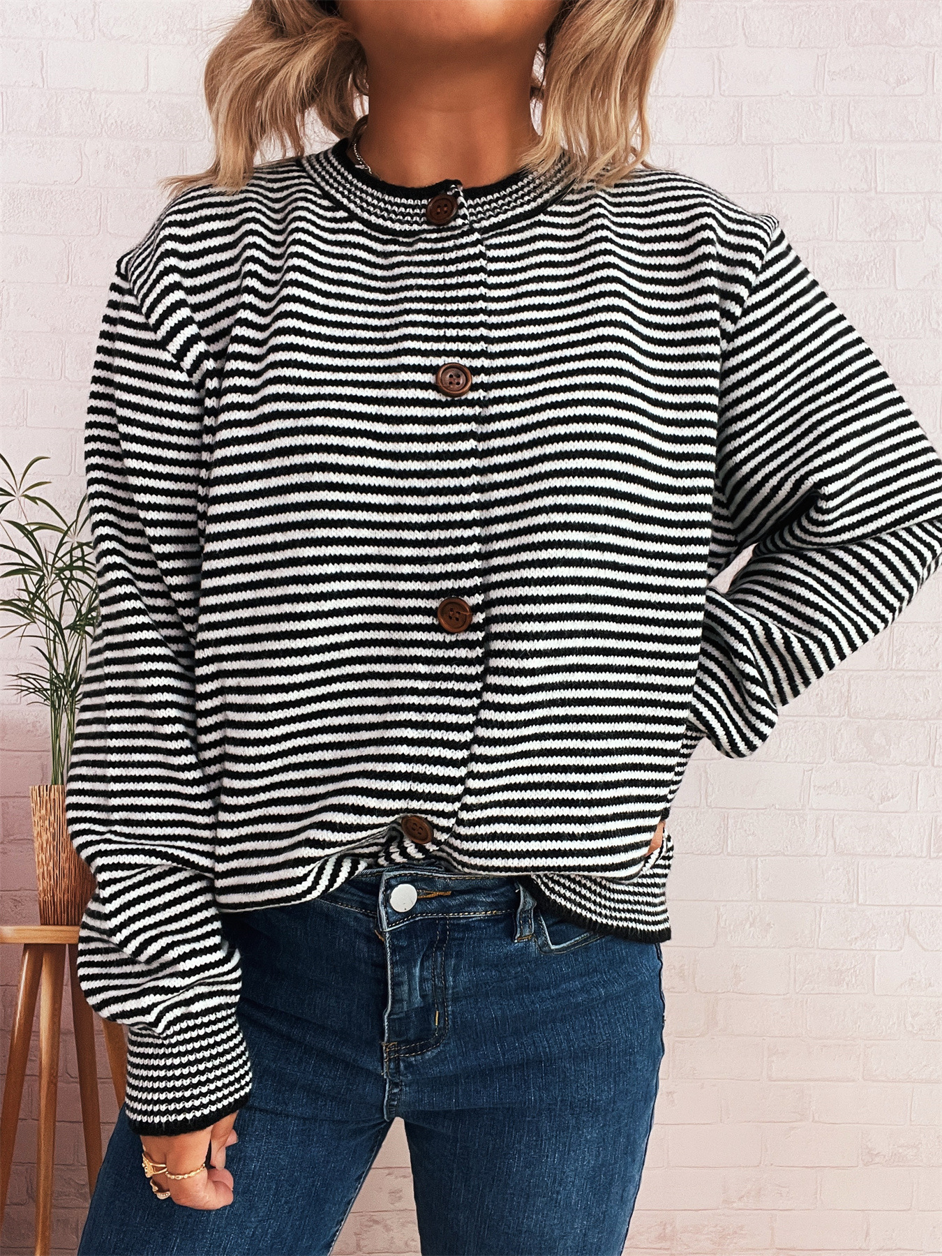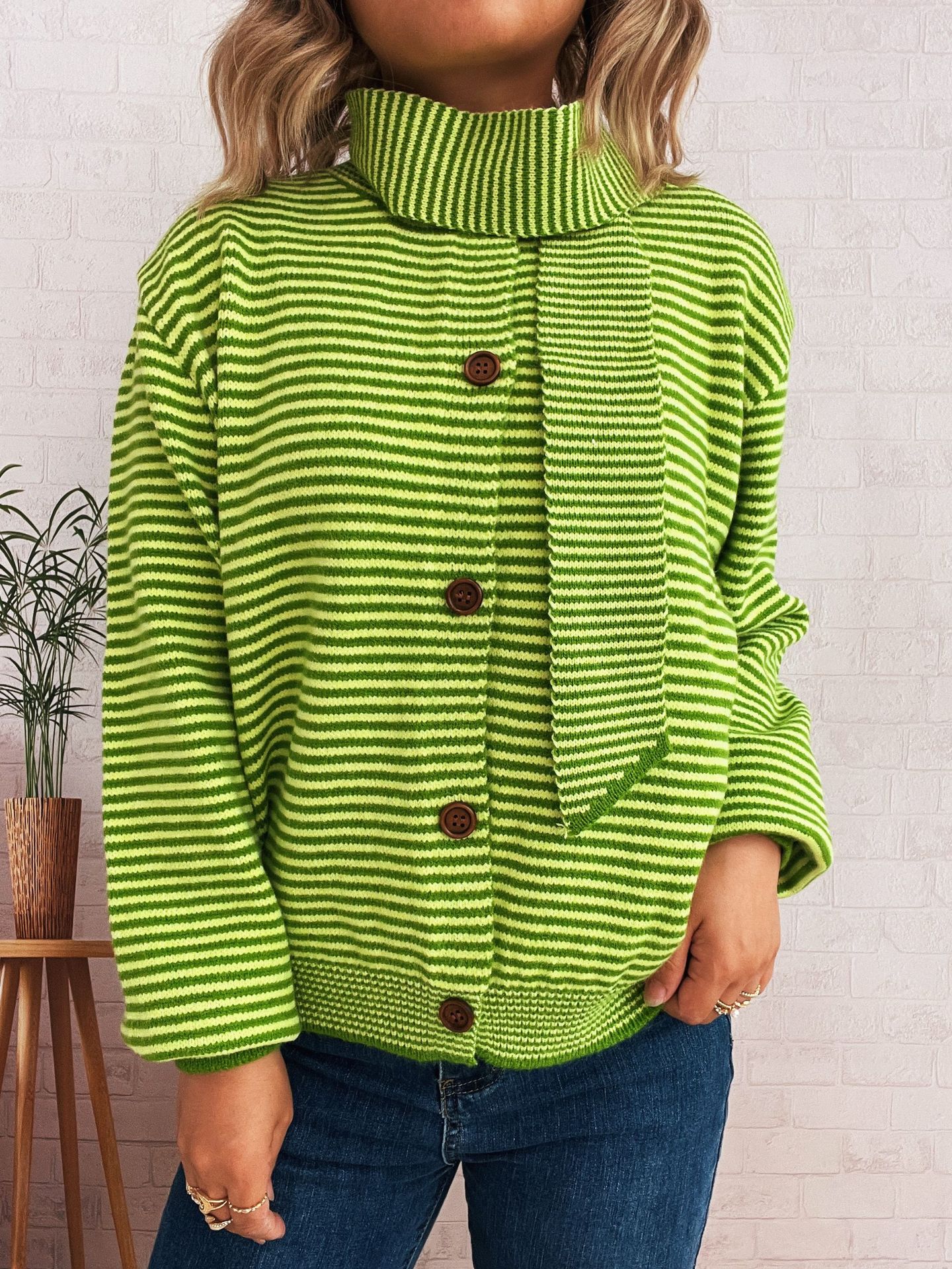 Elegant Retro Pinstripe Single-breasted Scarf Knitted Cardigan Sweater