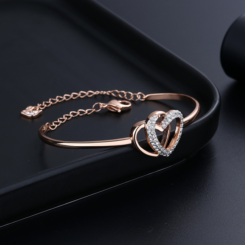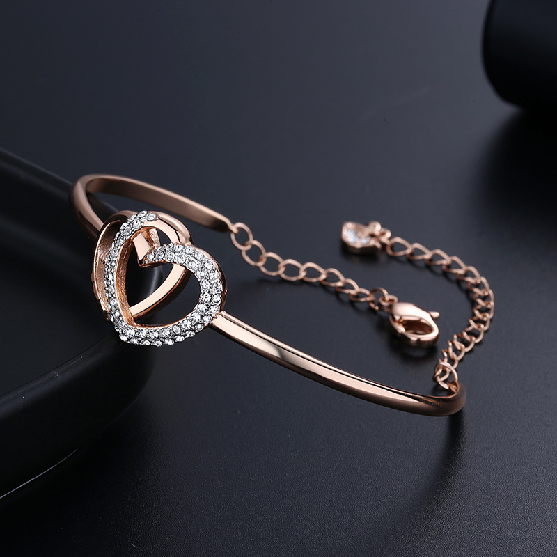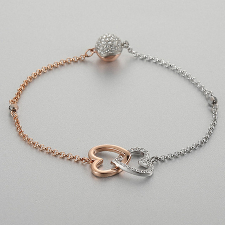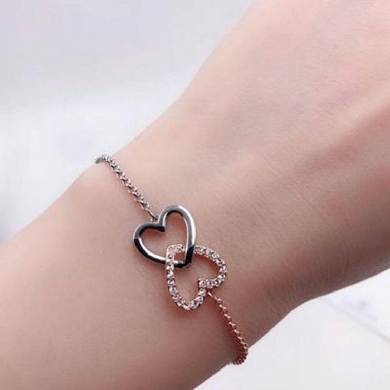 Elegant Romantic Temperament Double Heart Design Clavicle Chain Diamond Love Heart