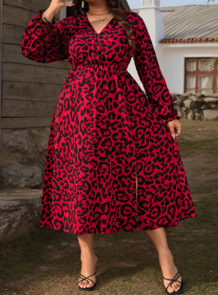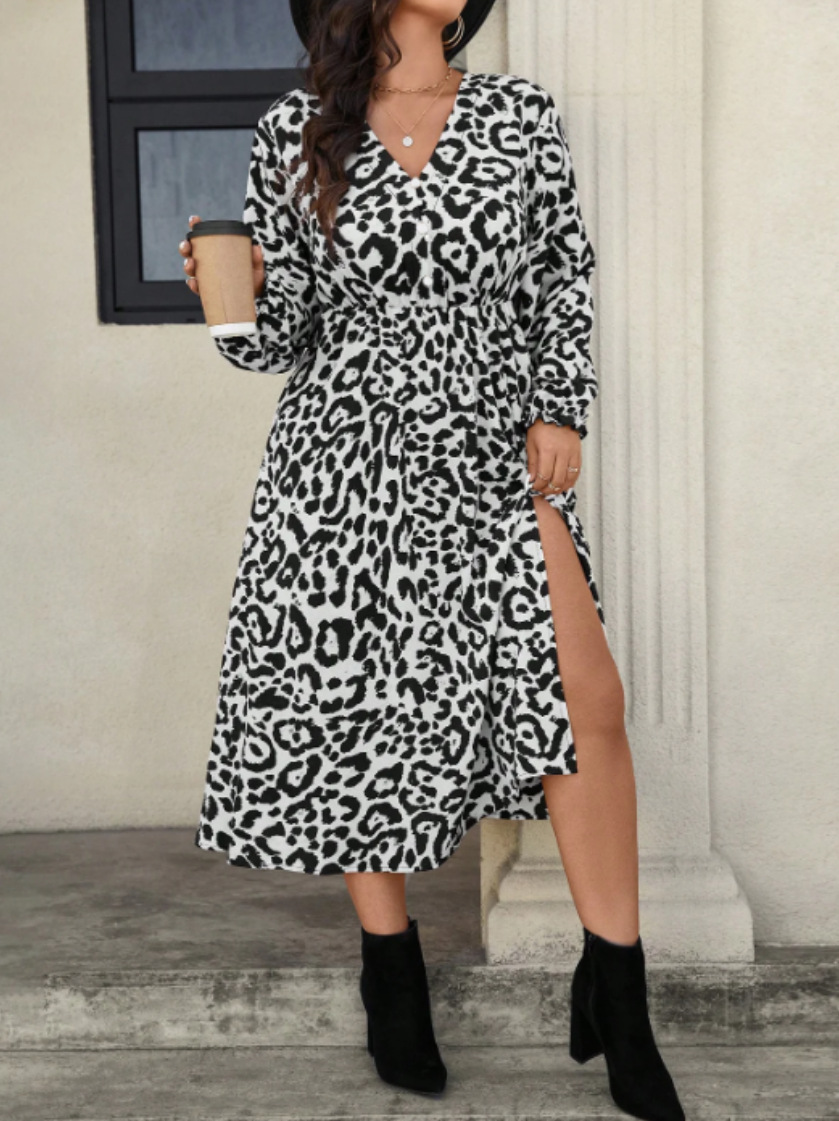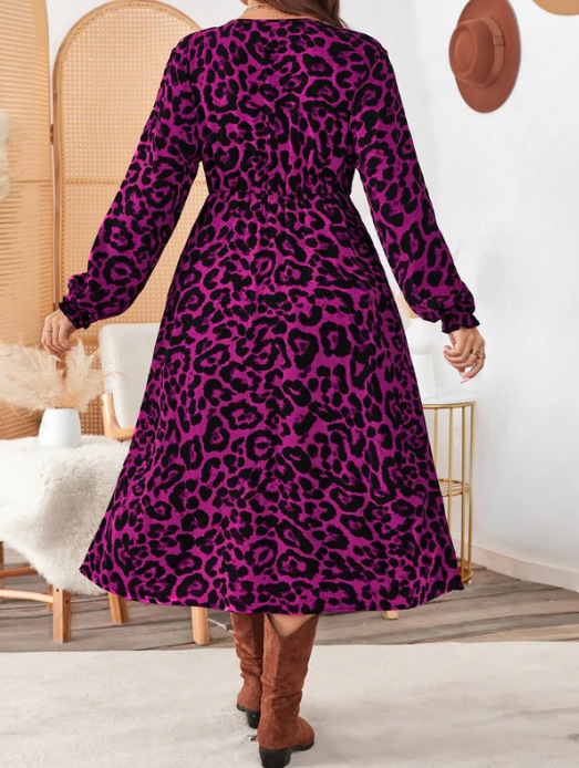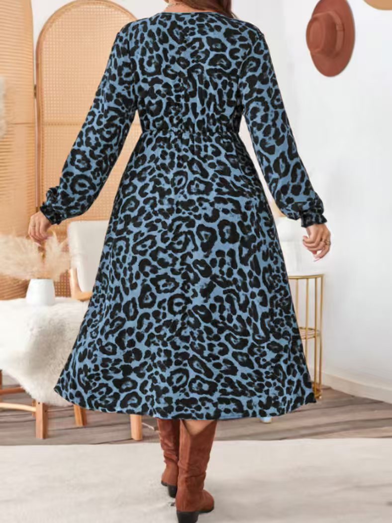 Elegant Sexy Leopard-Print V-Neck Plus-Size Dress For Women