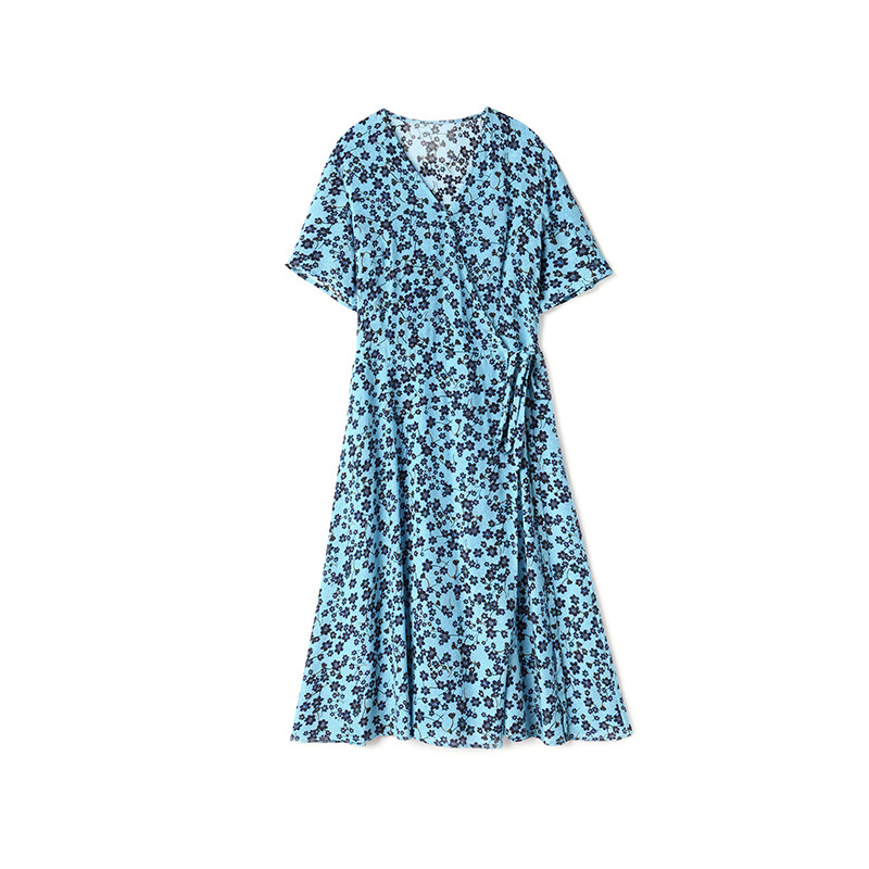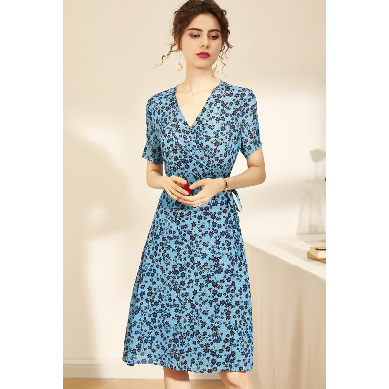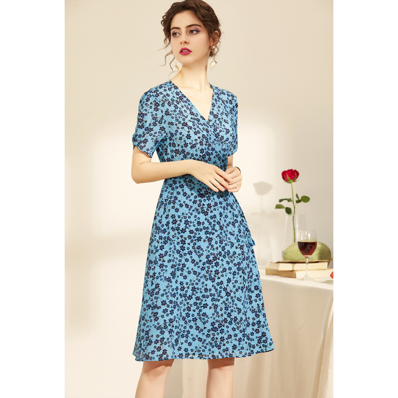 Elegant Silk Print V-neck Short-sleeved Sleeves