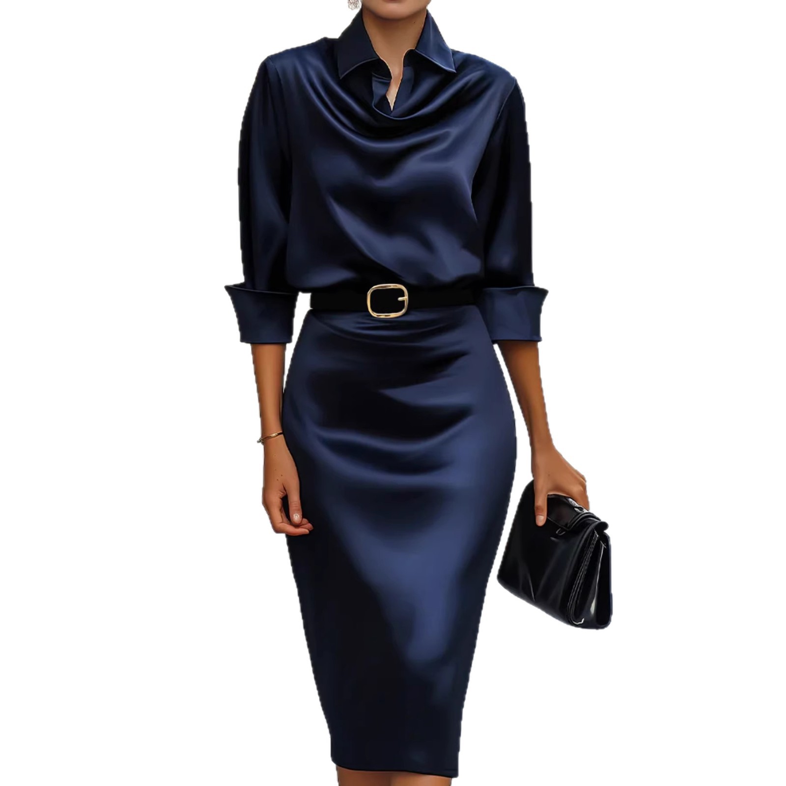 Elegant Slim-fit Half-sleeve Dress With A Lapel Collar