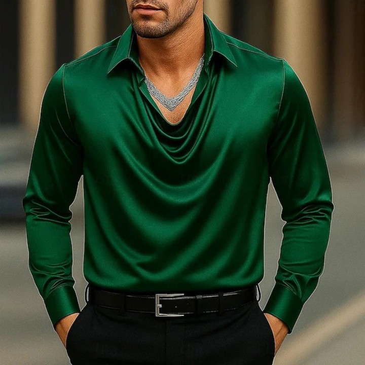 Elegant Solid-color Minimalist Open-collar Shirt For Men