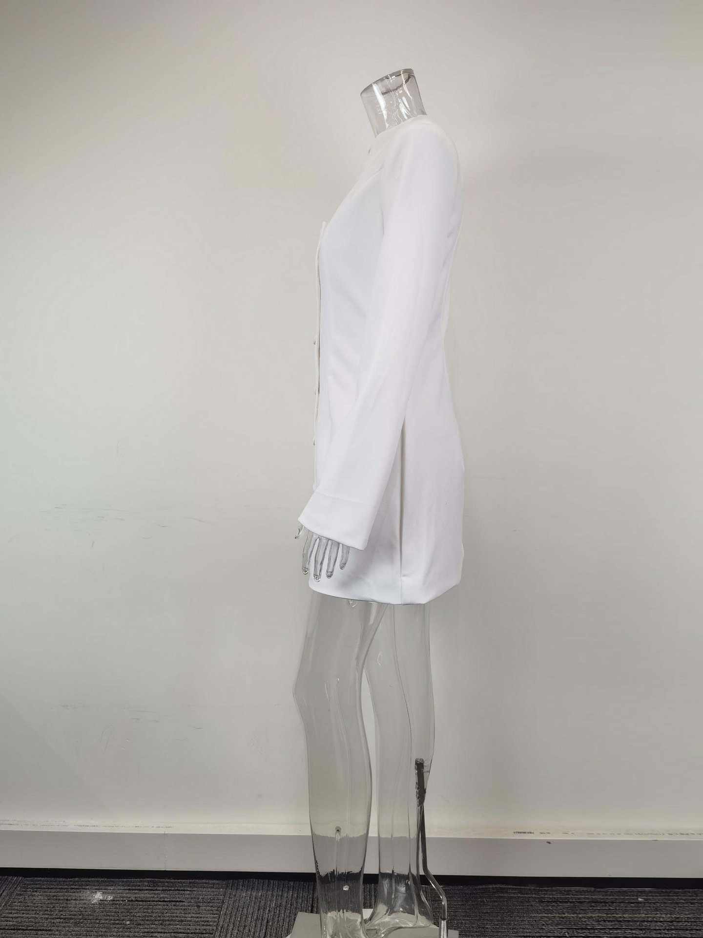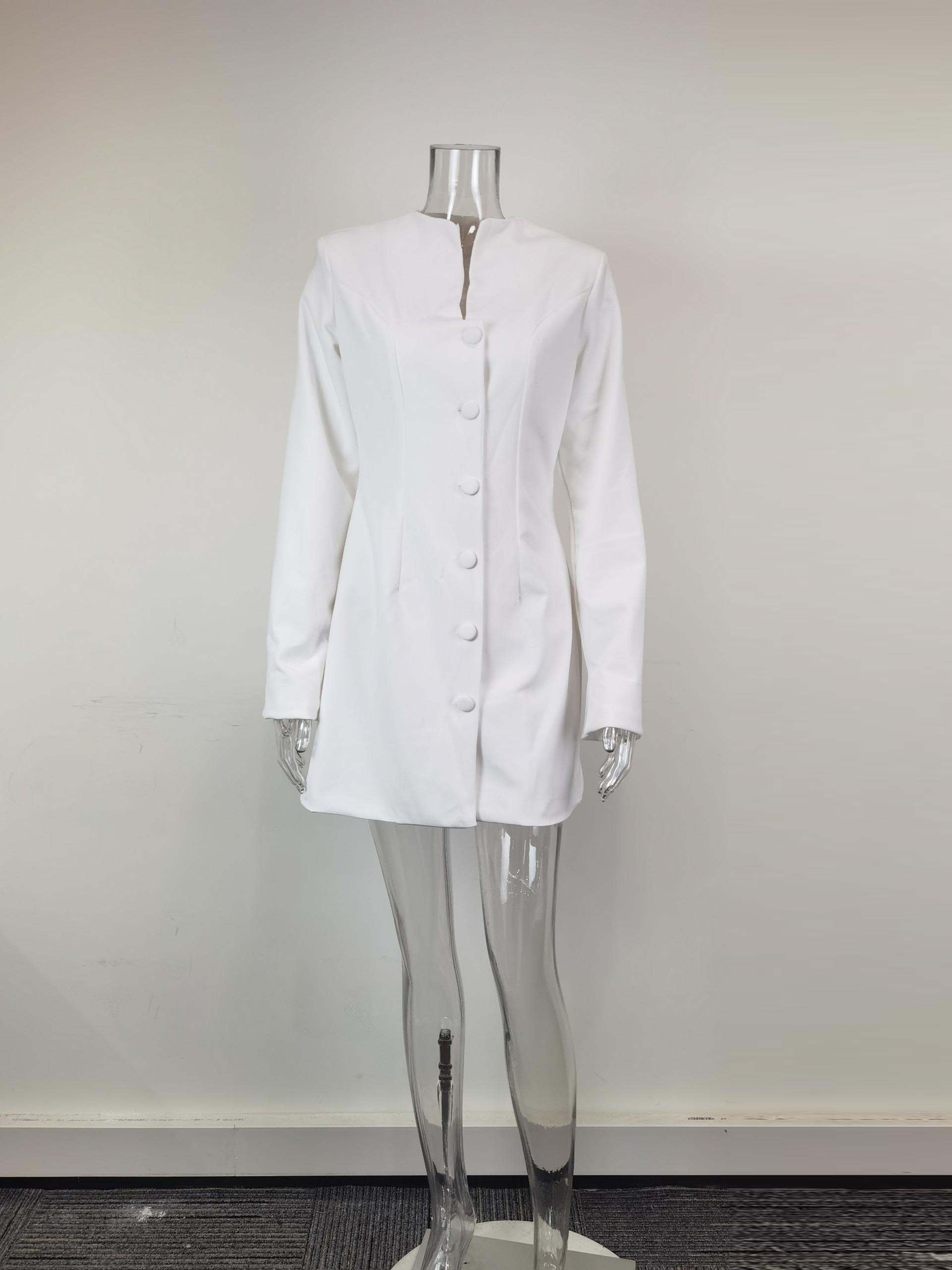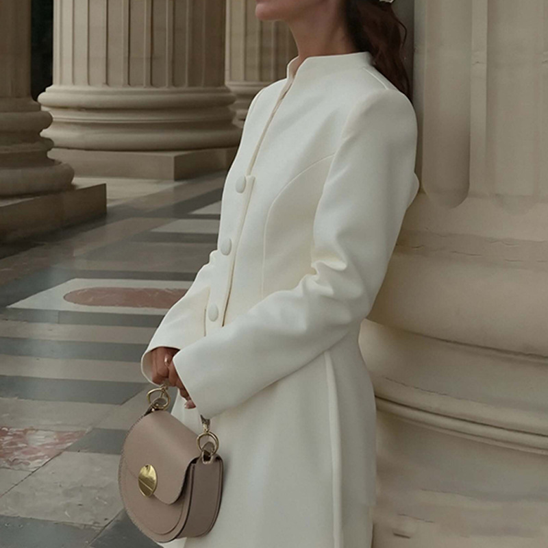 Elegant Solid Color Single-breasted Waist-cinching A-line Dress