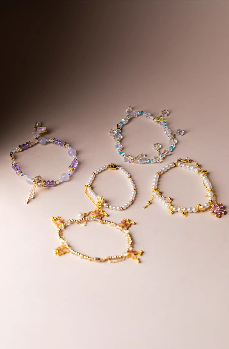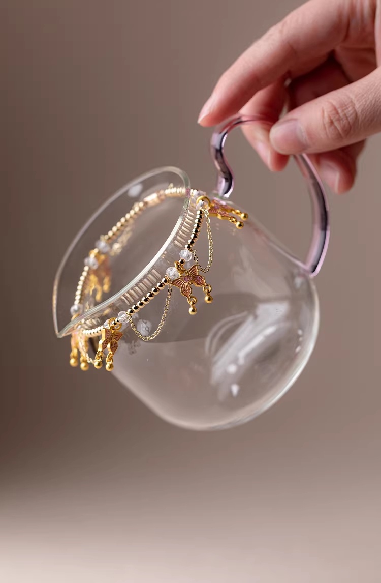 Color: Cloisonné gongbei. Amethyst butterfly self-suction gongbei chain. Cloisonné gongbei. Pink cherry blossom pearl gongbei chain. Gleaming colors. Butterfly teapot chain. Gongdao cup. Pearl self-suction chain. A galaxy of brilliance. Watercolor crystal chain.