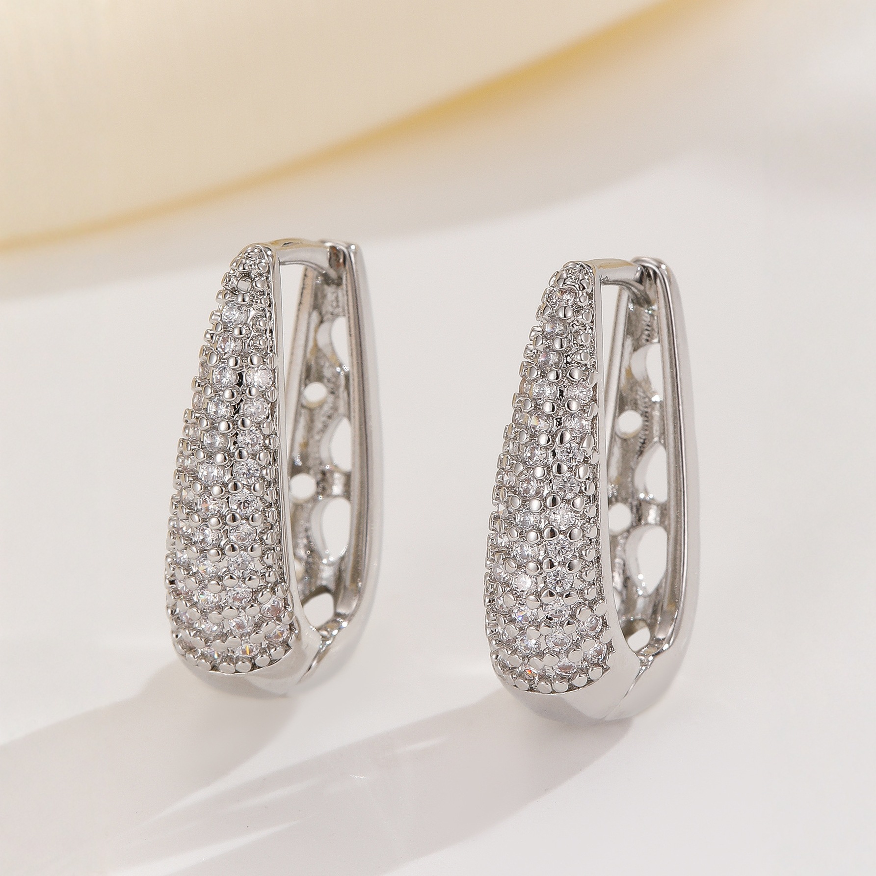 Elegant Temperament With Full Diamond Copper Earrings