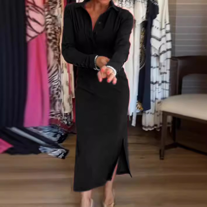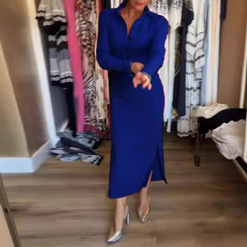Fabric Name TR Fabric Skirt Style A-line Skirt Colors Red, Black, Navy Blue Sleeve Style Regular Sleeves Main Fabric Composition Polyester Fiber Waist Style Mid-rise Sizes S, M, L, XL, XXL, 3XL Style Category Elegant Commute Combination Type Single Piece Skirt Length Long Skirt Sleeve Length Long Sleeves Skirt Category Dress Trendy Element Buttons Fit Pullover Style IntellectualElegant Processing Resin Color Fixing