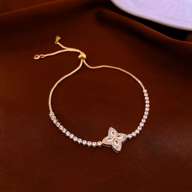 Elegant Zircon Four-petal Flower Bracelet