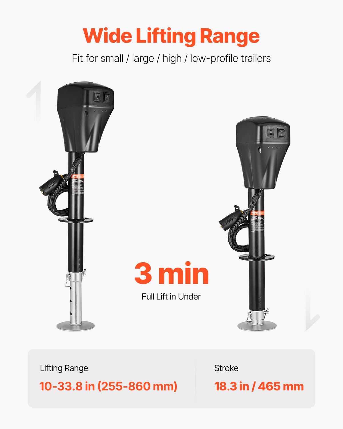 VEVOR Elektrischer Anhängerheber, 2267 kg, Wohnmobil-Anhängerstütze mit 7-poligem Stecker, manueller Kurbel & Wagenheberabdeckung, 255-860 mm Hub, für Anhänger, Wohnmobile & Wohnwagen, schwarz