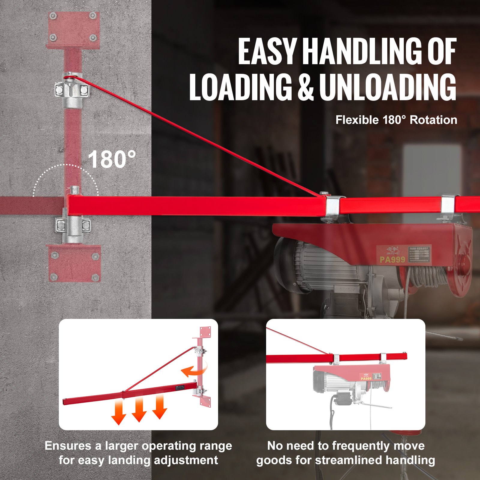 VEVOR Elektrischer Hebezeug-Stützarm 600 kg Tragkraft, elektrischer Hebezeughalter-Schwenkarm Stahlhebezeugrahmen 180° schwenkbarer Gerüsthebezeug-Hebearm Windenhebezeugarm zum Heben Werkstatt Garage