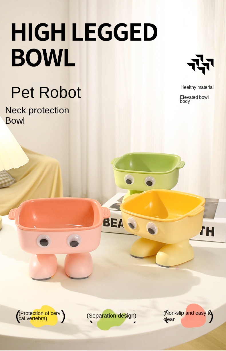 【Cartoon Robot Design】: This pet feeding bowl features a cute cartoon robot design, adding a new companion for your beloved pets.