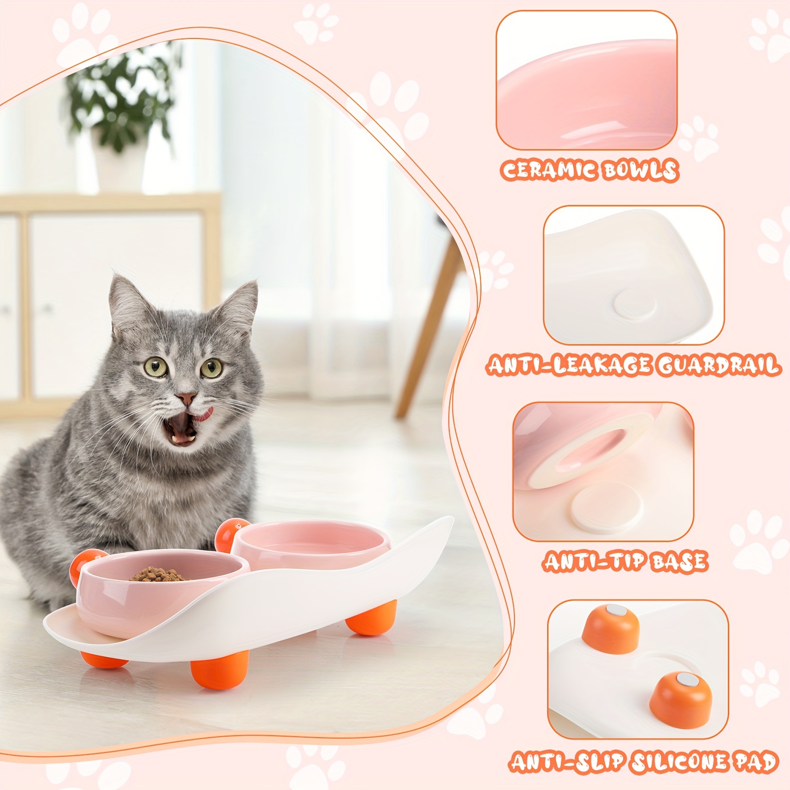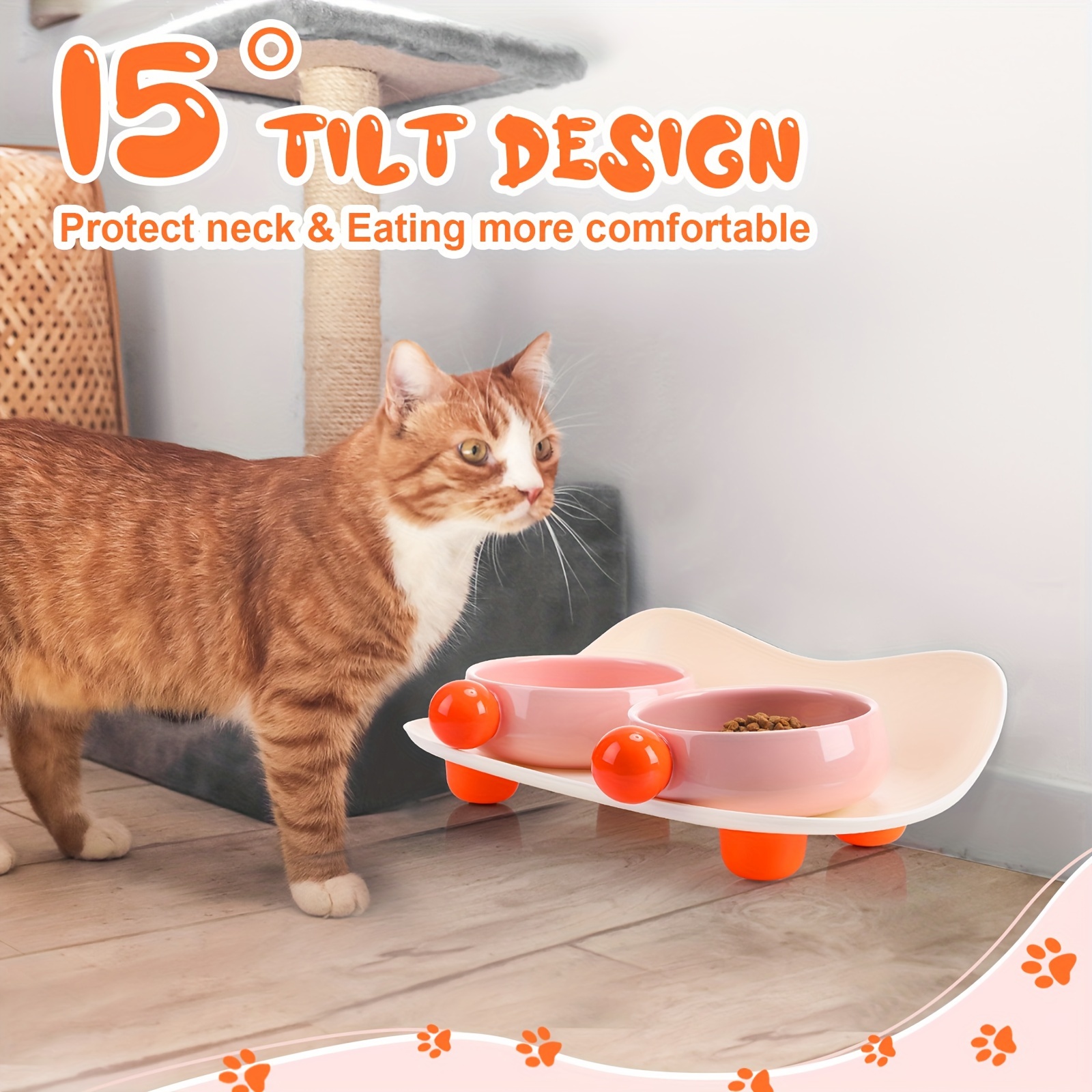 Elevated Ceramic Bowl For Cat Food Double Raised Bowl With Non Slip Support 2 Bowls For Cat Food And Water Washable Ceramic Bowl For Small Dogs Puppies And Cats Indoors
