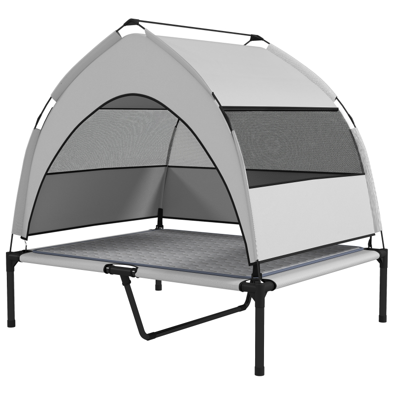 Elevated Dog Bed With Removable Canopy, Portable Outside Raised Pet Cot With Cooling Pad, Storage Bag, 42 X 30 X 37