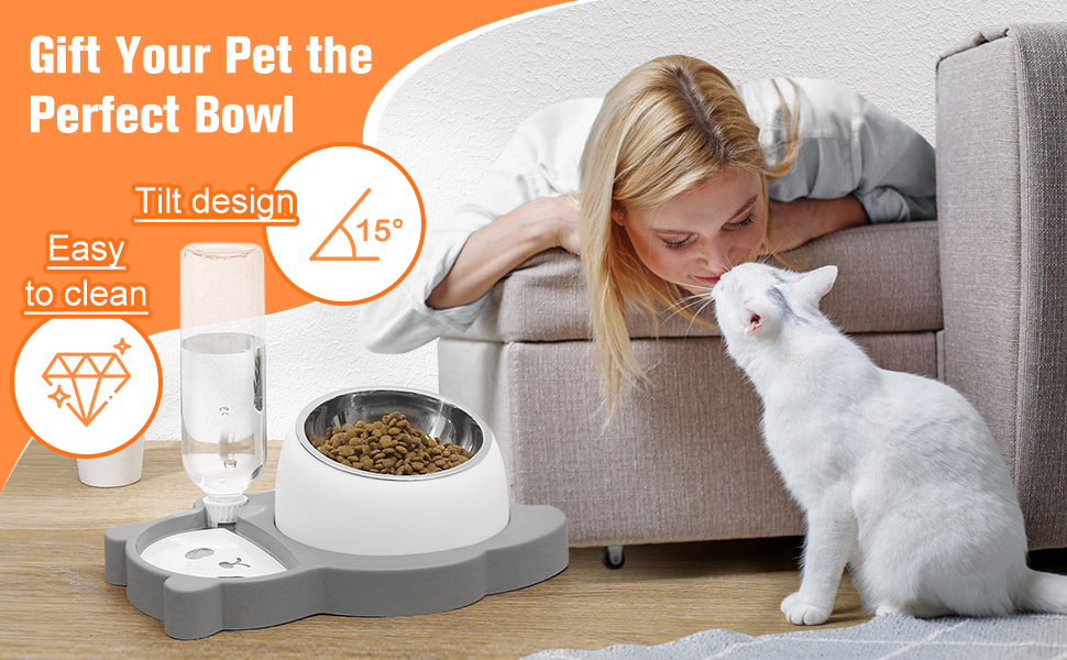 【Eco-friendly Material】The tilted cat food bowls are made of eco-friendly food-grade quality PC material, very safe for your pets. All parts can be easily disassembled, especially the water blocking ring in the bottle cap, which can also be disassembled. Clean without dead ends