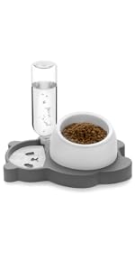 【Automatic Water Supply】The cat food and water bowl set adopts the siphon principle, automatic water supply and can control the water level stably, 17 oz large capacity water bottle. Whether you are at home or not, your pet can drink fresh water every day.