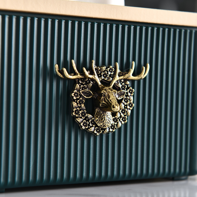 Color: green deer head tissue box, beige deer head tissue box