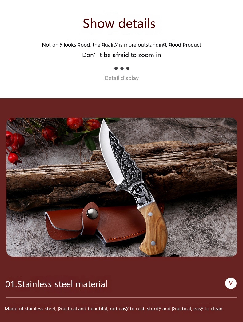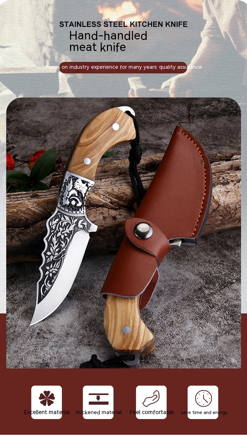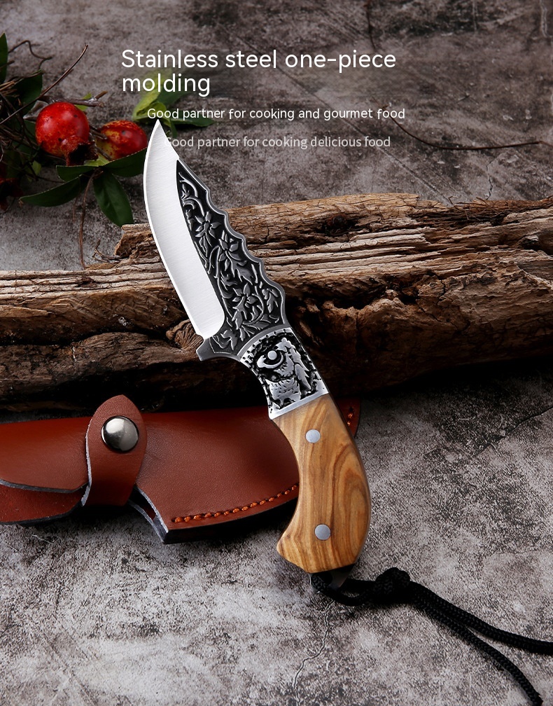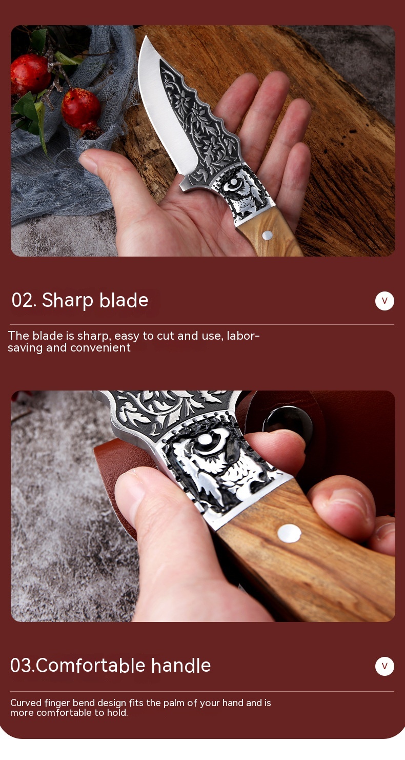Embossed Carved Mongolian Knife For Handcraft Handle Meat Knife Tibetan Knife