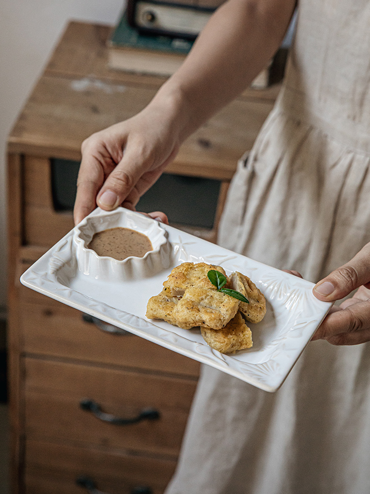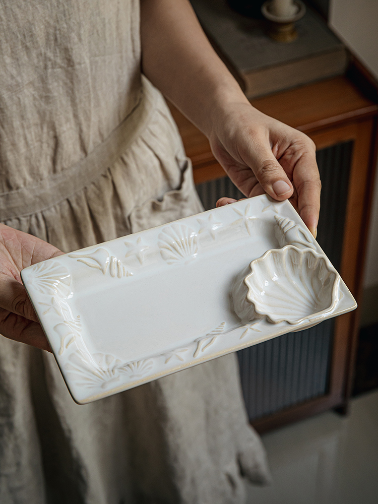 Product information:Tableware craft: glaze kiln Disk Type: compartment tray Material: CeramicSize: 7.5 inches Shape: rectangle
