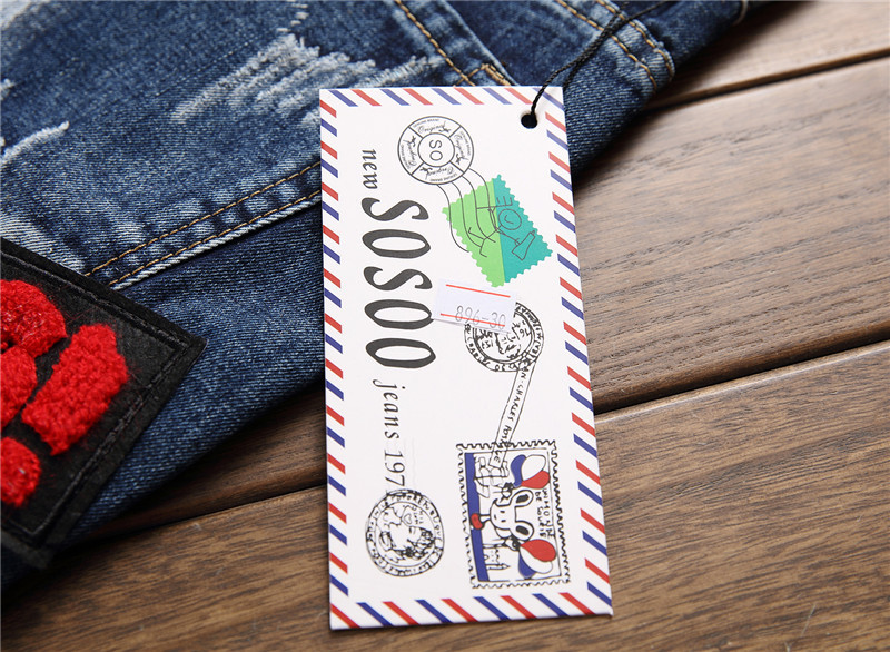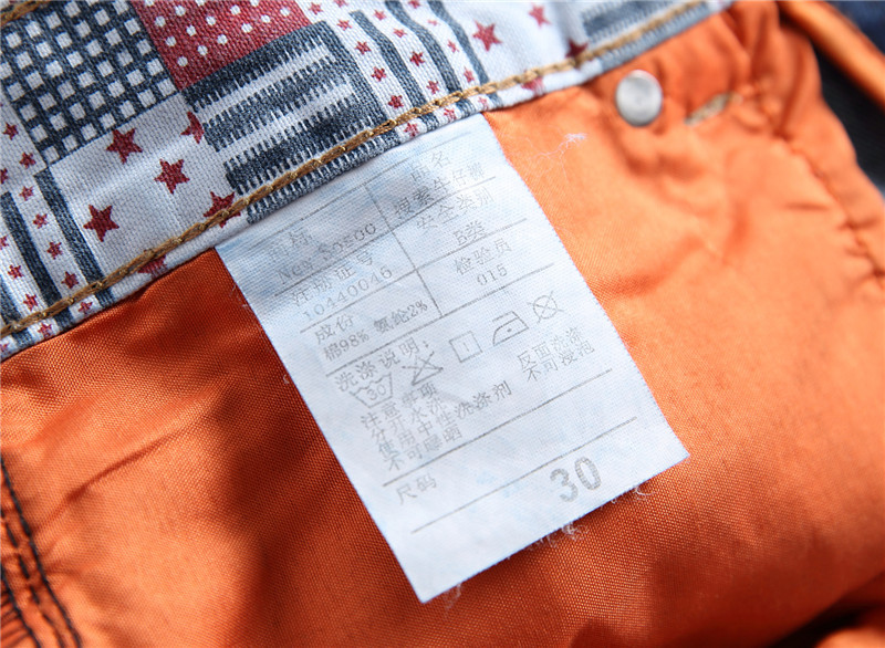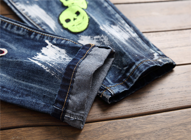 Embroidered Flag Badge Paint Men's Slim Fit Non-Stretch Jeans