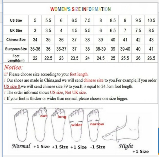 1. Asian sizes are 1 to 2 sizes smaller than European and American people. Choose the larger size if your size between two sizes. Please allow 2-3cm differences due to manual measurement.