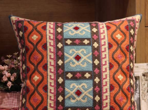 This product is made of thick pure cotton fabric, single-sided Nepalese pattern embroidery, simple and natural embroidered color, invisible zipper installed, simple and beautiful.
