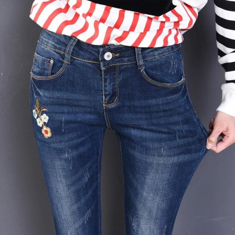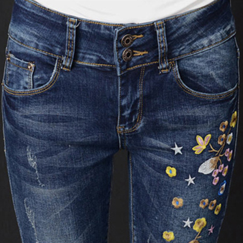 Embroidered High-rise Stretch Jeans