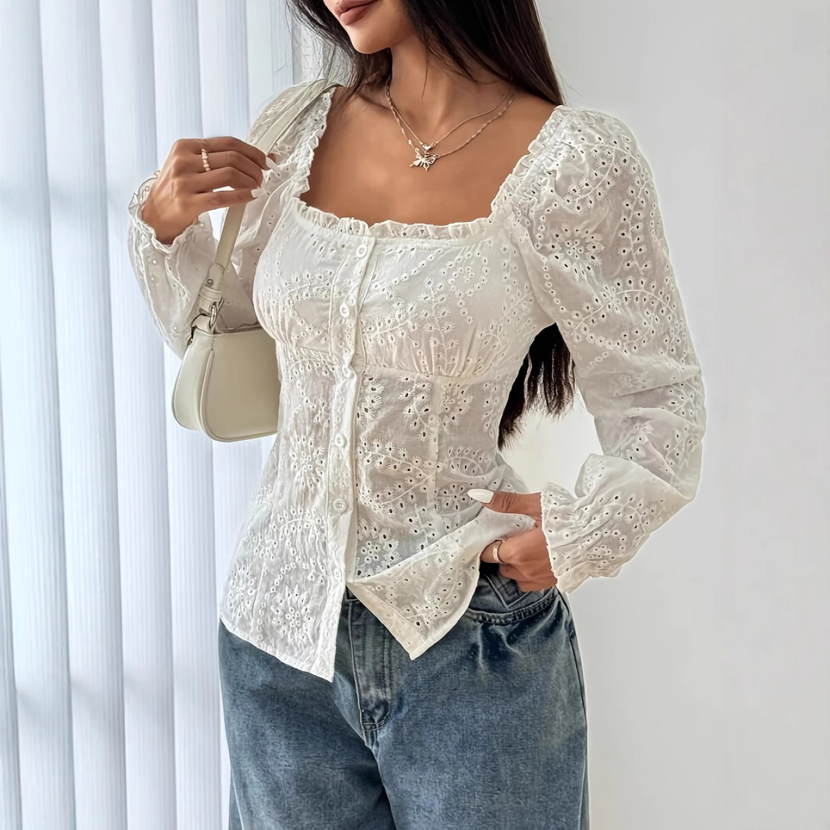 Product information: Pattern: Botanical floral Color: White Sizes: S, M, L Main fabric content: Cotton Sleeve length: Long sleeve