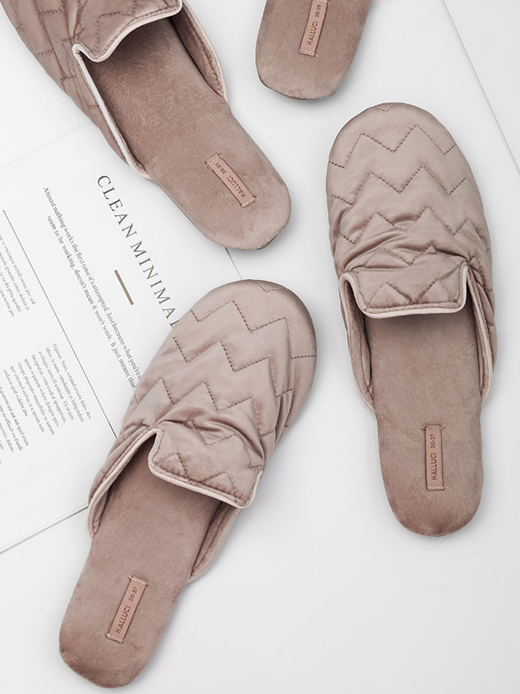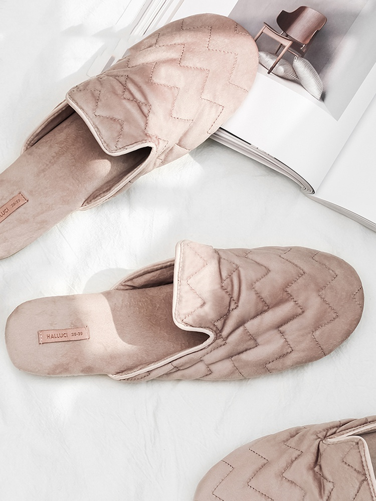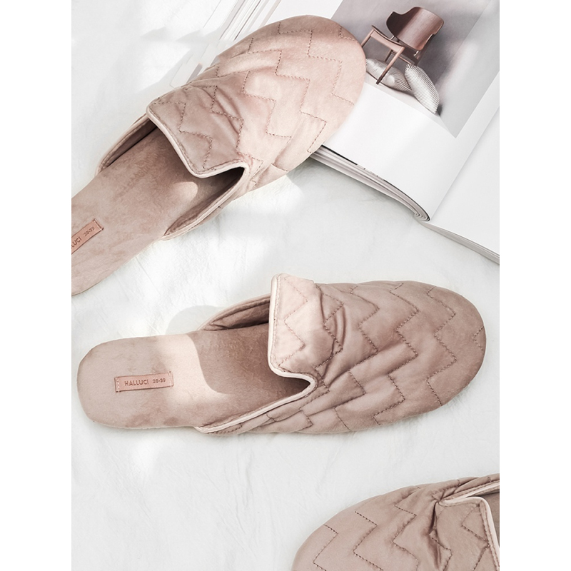 Color classification: pink velvet embroidery slippers, champagne tassel ball slippers