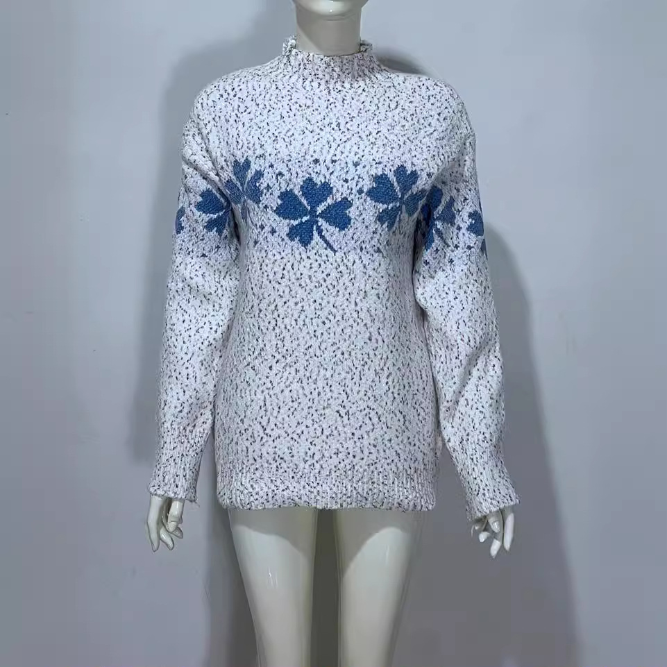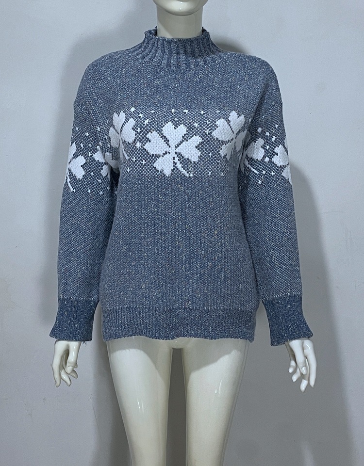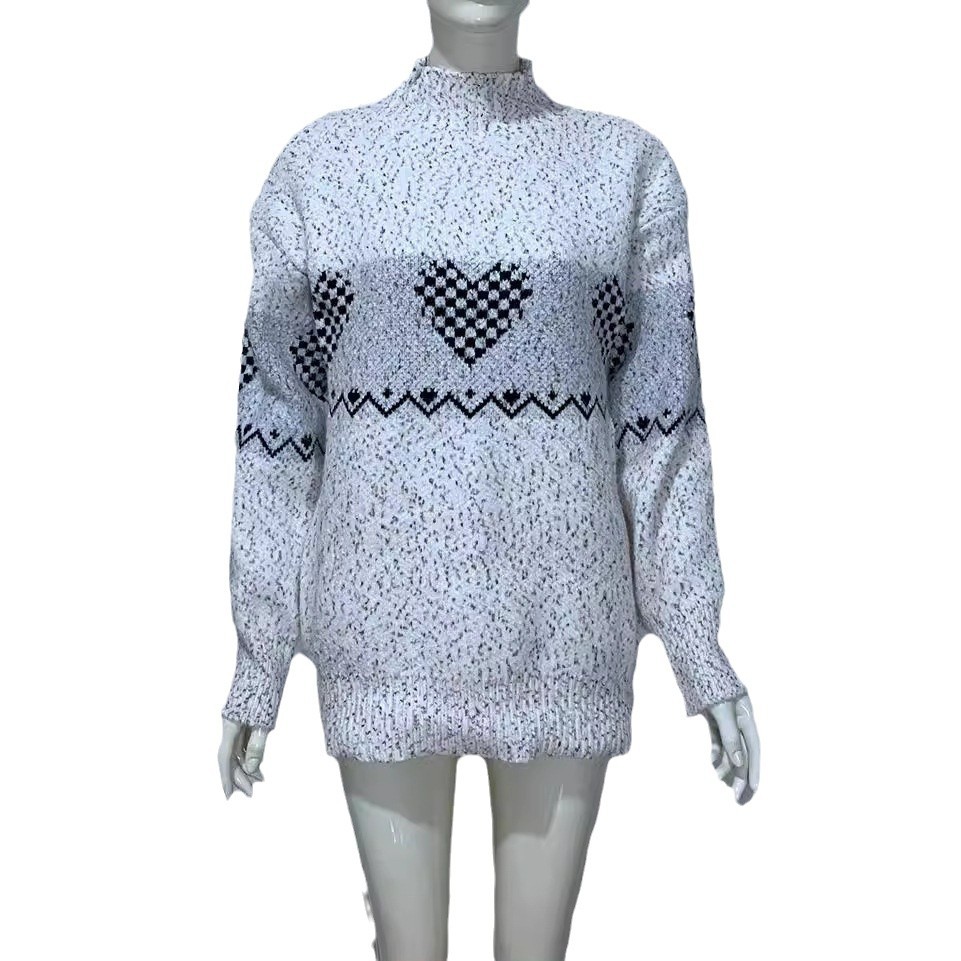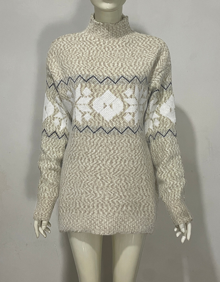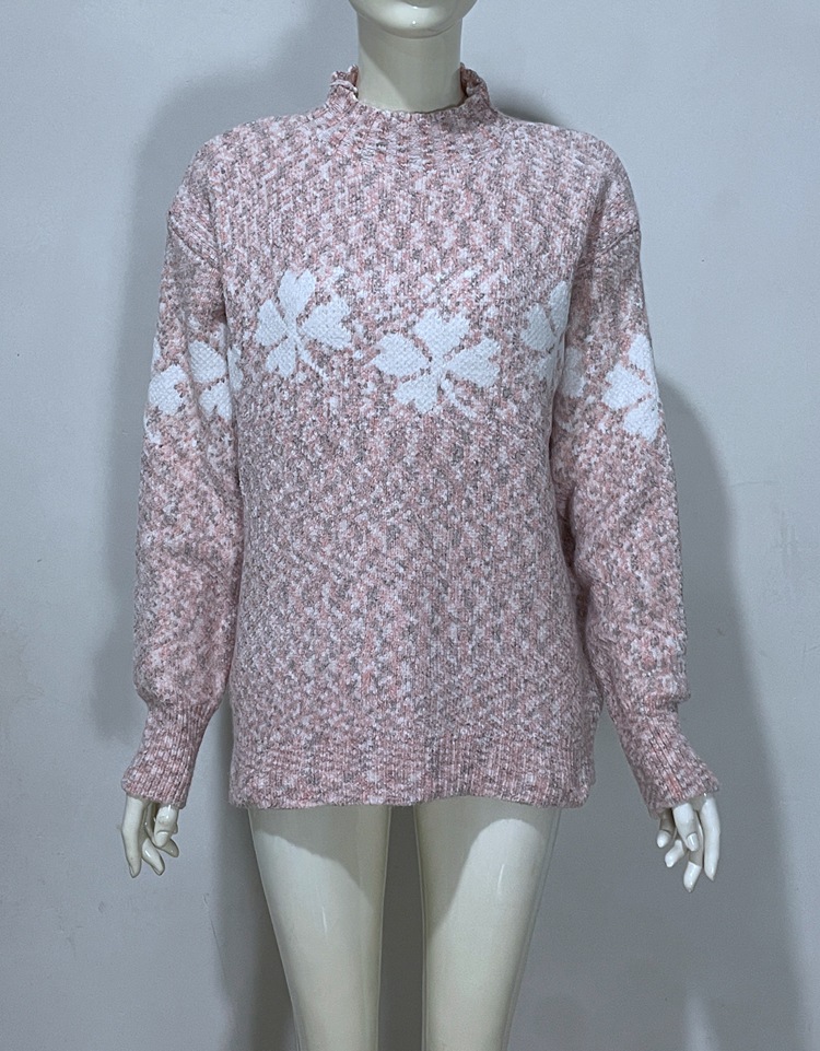 Embroidered Jacquard Pullover Loose Bottoming Shirt Mock Neck Sweater Coat