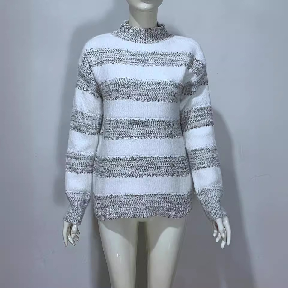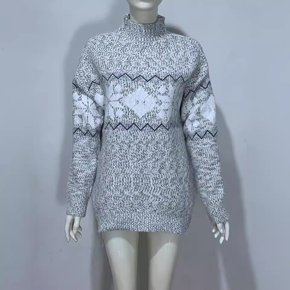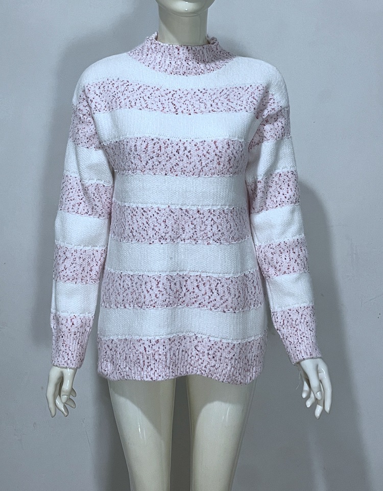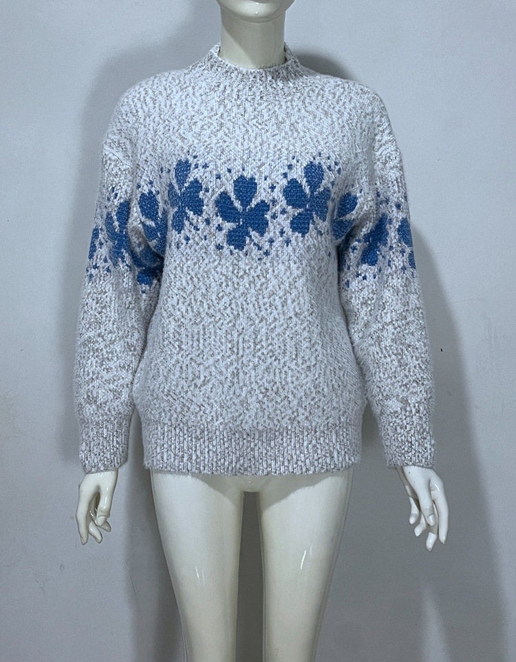 Embroidered Jacquard Pullover Loose Bottoming Shirt Mock Neck Sweater Coat