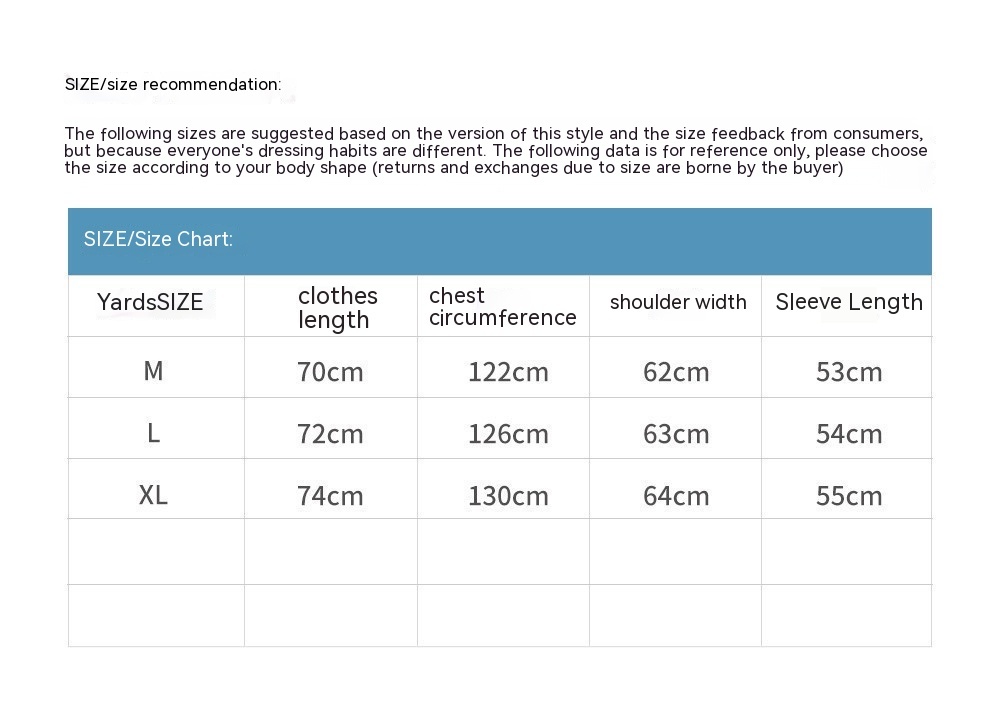 1. Asian sizes are 1 to 2 sizes smaller than European and American people. Choose the larger size if your size between two sizes. Please allow 2-3cm differences due to manual measurement. 2. Please check the size chart carefully before you buy the item, if you don't know how to choose size, please contact our customer service. 3.As you know, the different computers display colors differently, the color of the actual item may vary slightly from the following images.