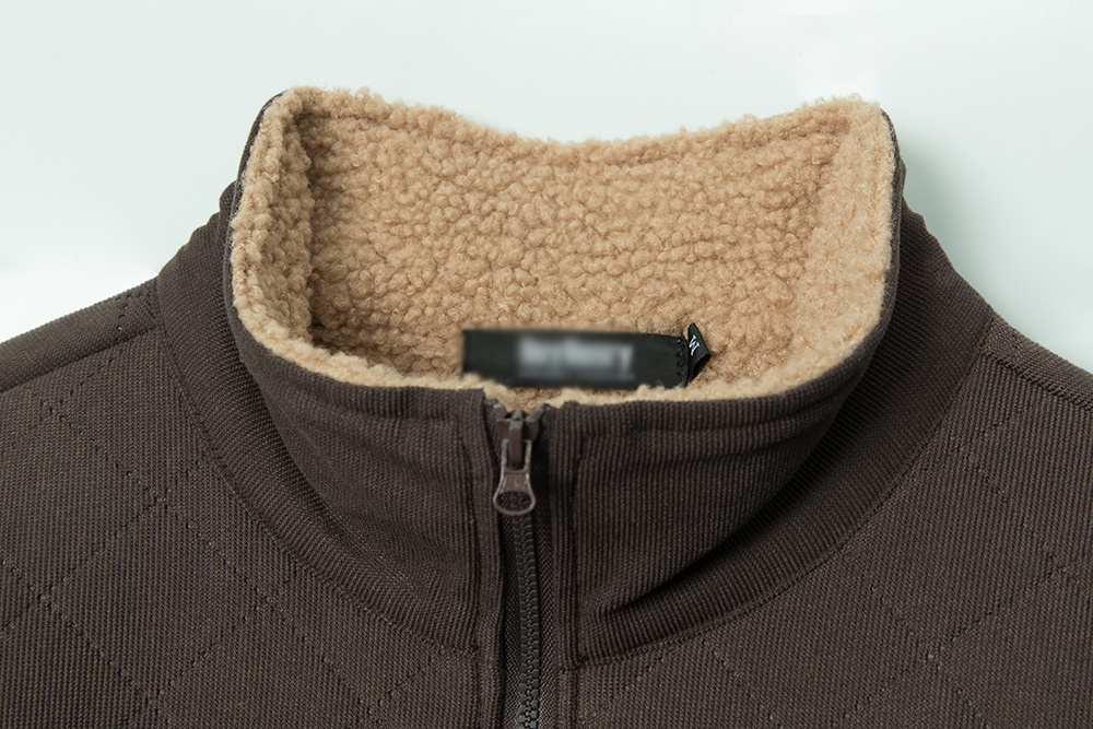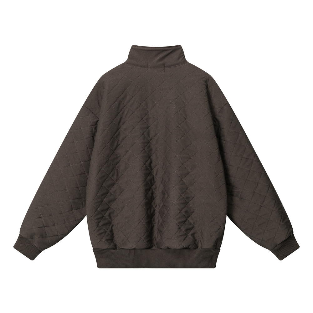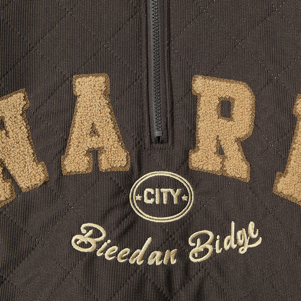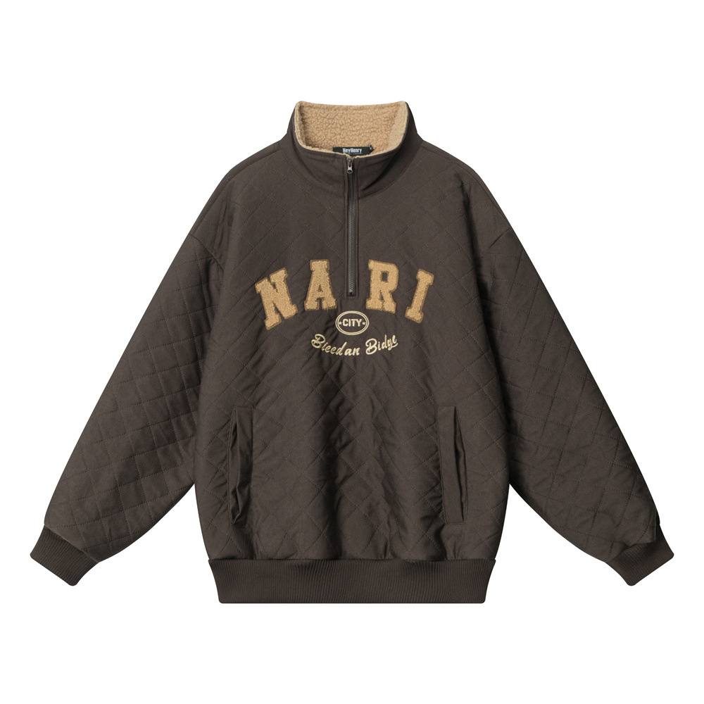 Embroidered Letters Half Zipped Stand Collar Thick Warm Sweater