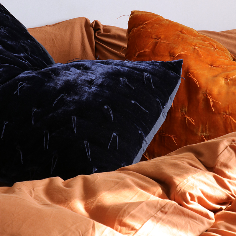 Daisy YHOME Original homemade high-end georgy velvet quilted embroidery with tassel long pillowcase caramel sapphire blue