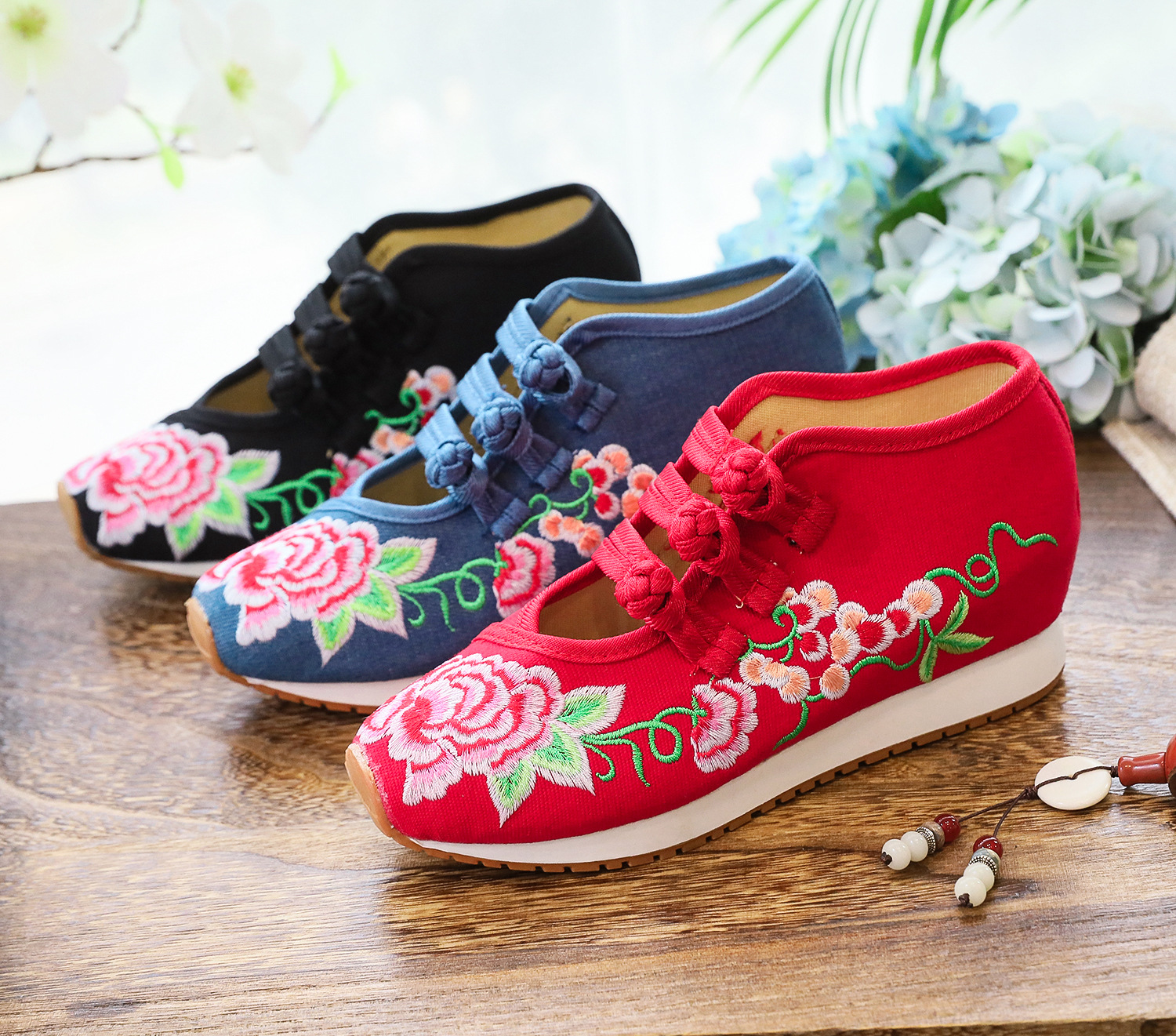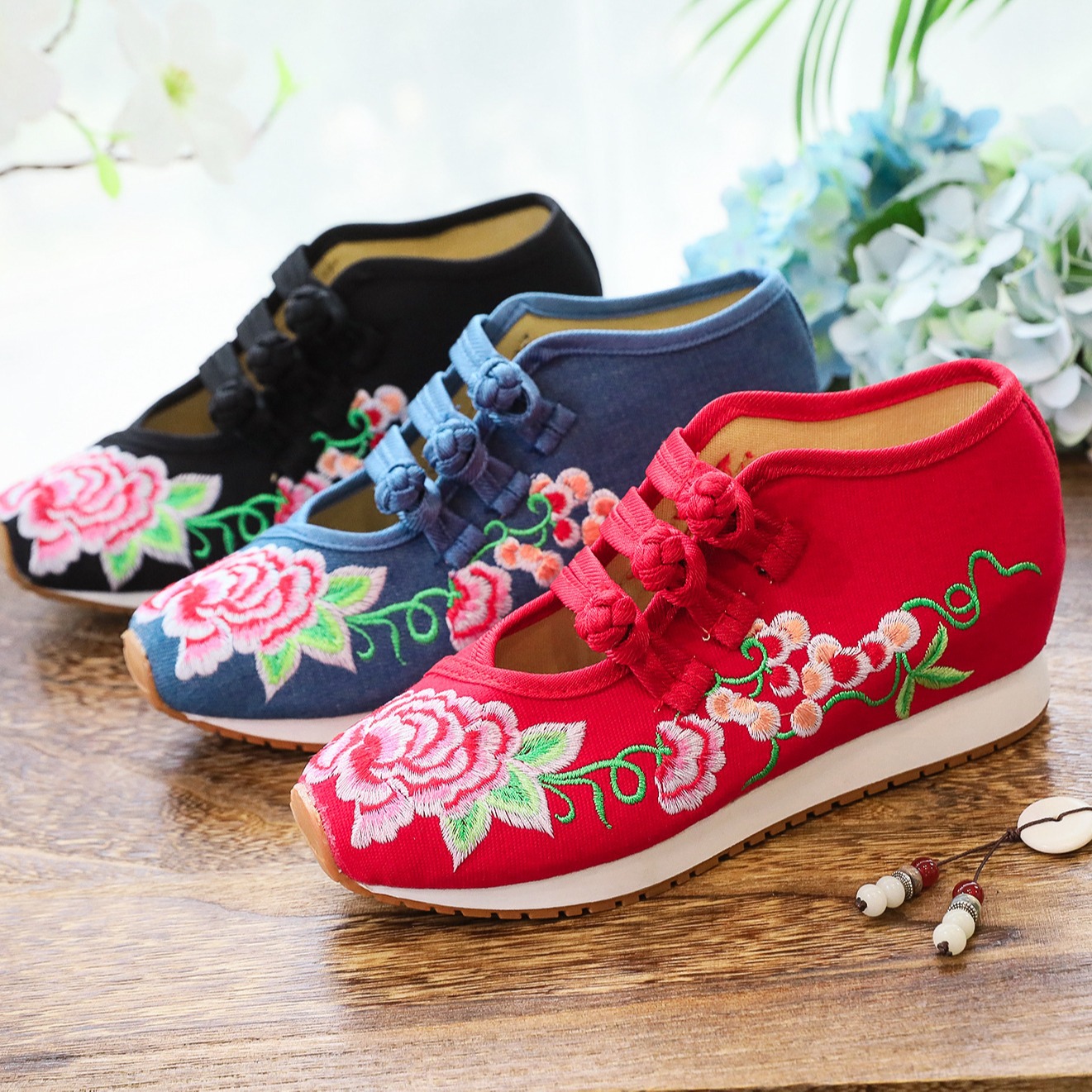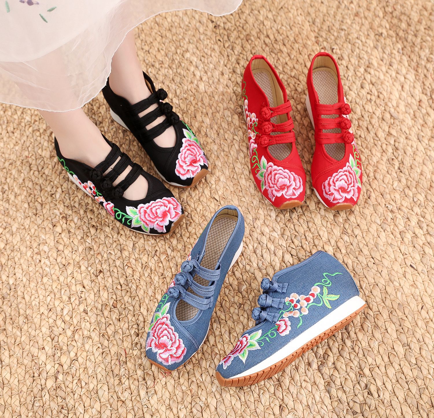 Color: red, black, denim blue