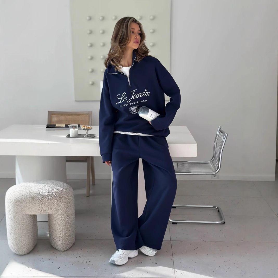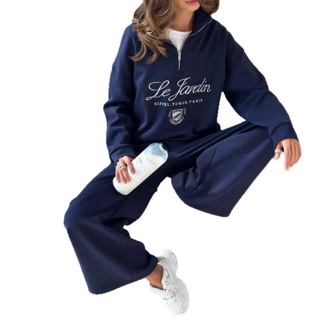 Embroidered Sweater Women's White Half Zipper Profile Suit