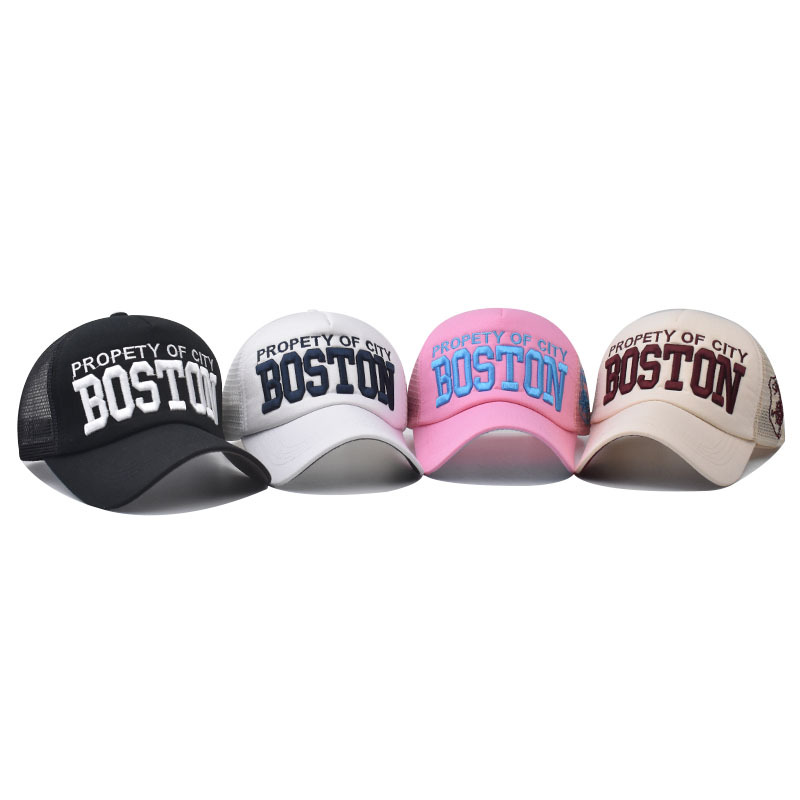 Color: boston black mesh cap, boston beige mesh cap, boston pink mesh cap, boston white mesh cap