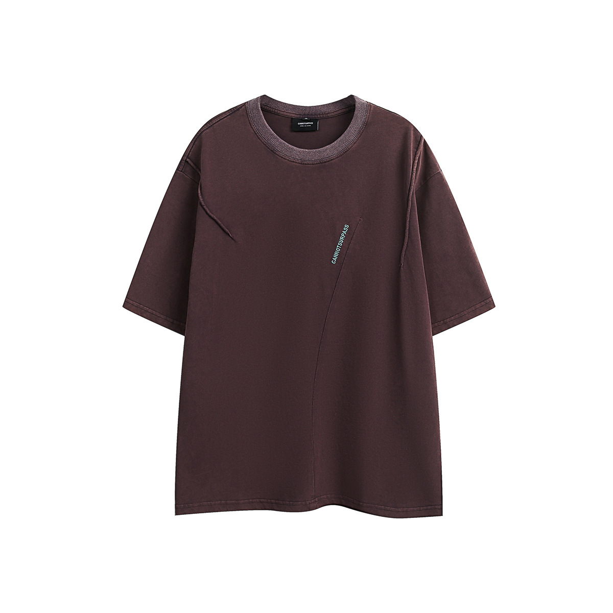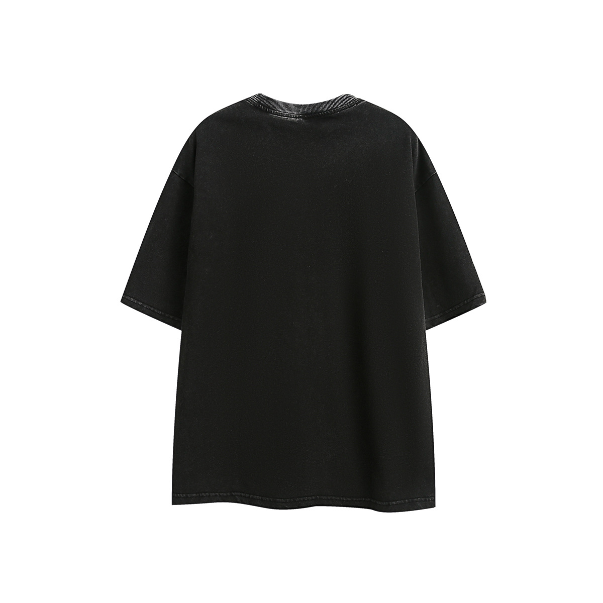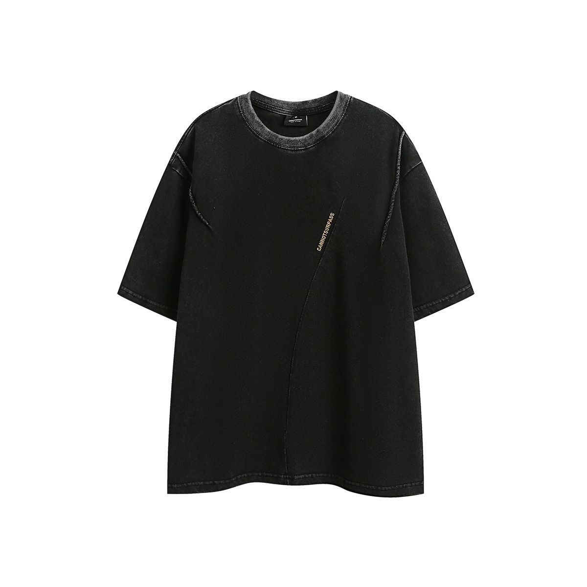 Embroidered Washed Short-sleeved Retro Half-sleeve T-shirt
