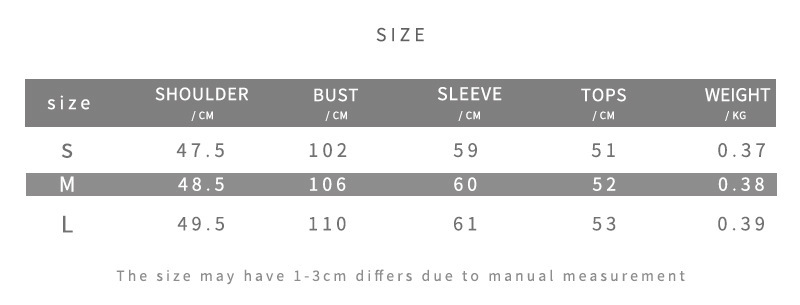 Note: 1. Asian sizes are 1 to 2 sizes smaller than European and American people. Choose the larger size if your size between two sizes. Please allow 2-3cm differences due to manual measurement. 2. Please check the size chart carefully before you buy the item, if you don't know how to choose size, please contact our customer service. 3.As you know, the different computers display colors differently, the color of the actual item may vary slightly from the following images.