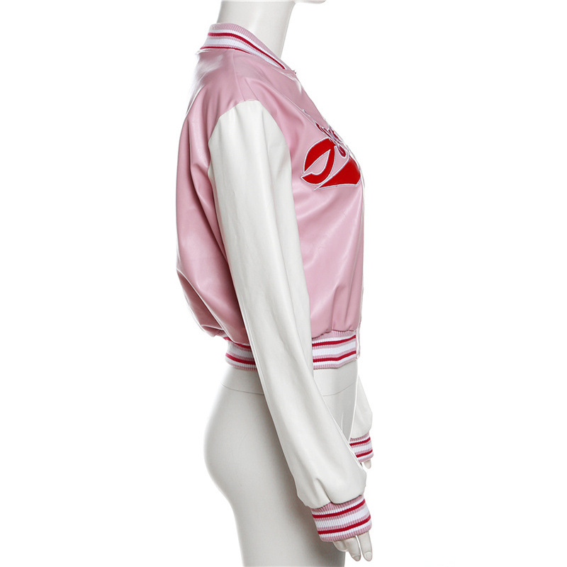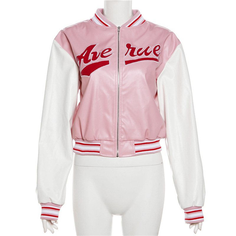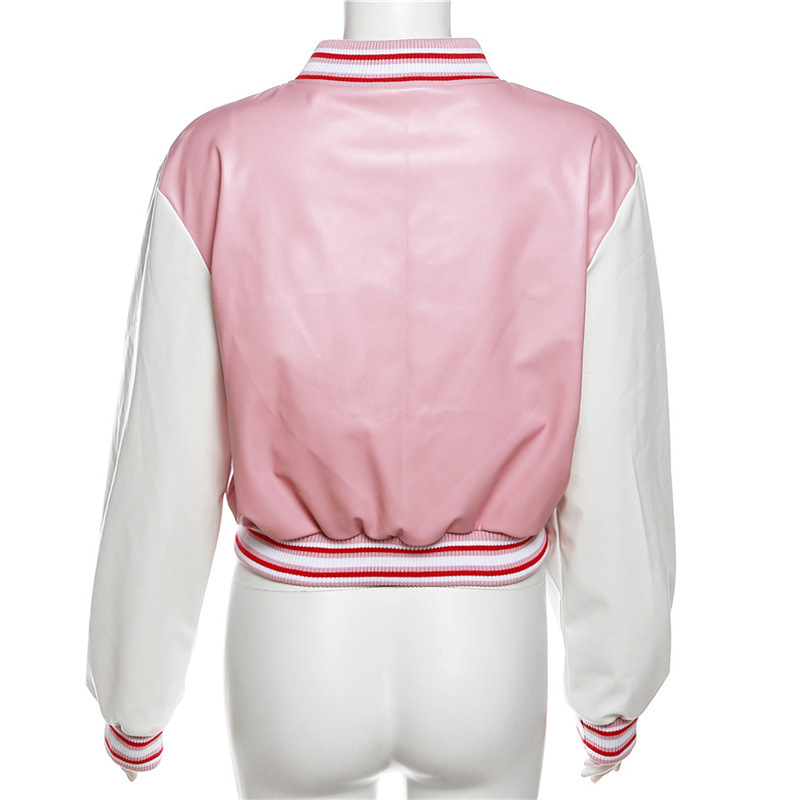 Embroidery Contrast Color Slim Fit Patchwork Jacket Baseball Uniform Jacket
