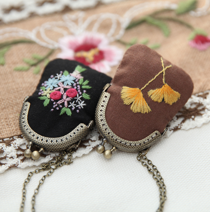 H small mouth gold bag ~ ginkgo biloba +9.5 plastic embroidery stretch,