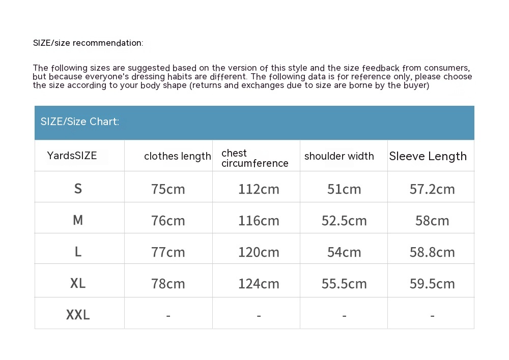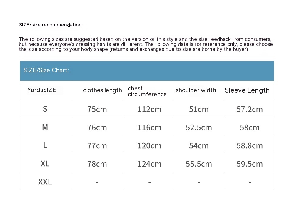 1. Asian sizes are 1 to 2 sizes smaller than European and American people. Choose the larger size if your size between two sizes. Please allow 2-3cm differences due to manual measurement. 2. Please check the size chart carefully before you buy the item, if you don't know how to choose size, please contact our customer service. 3.As you know, the different computers display colors differently, the color of the actual item may vary slightly from the following images.