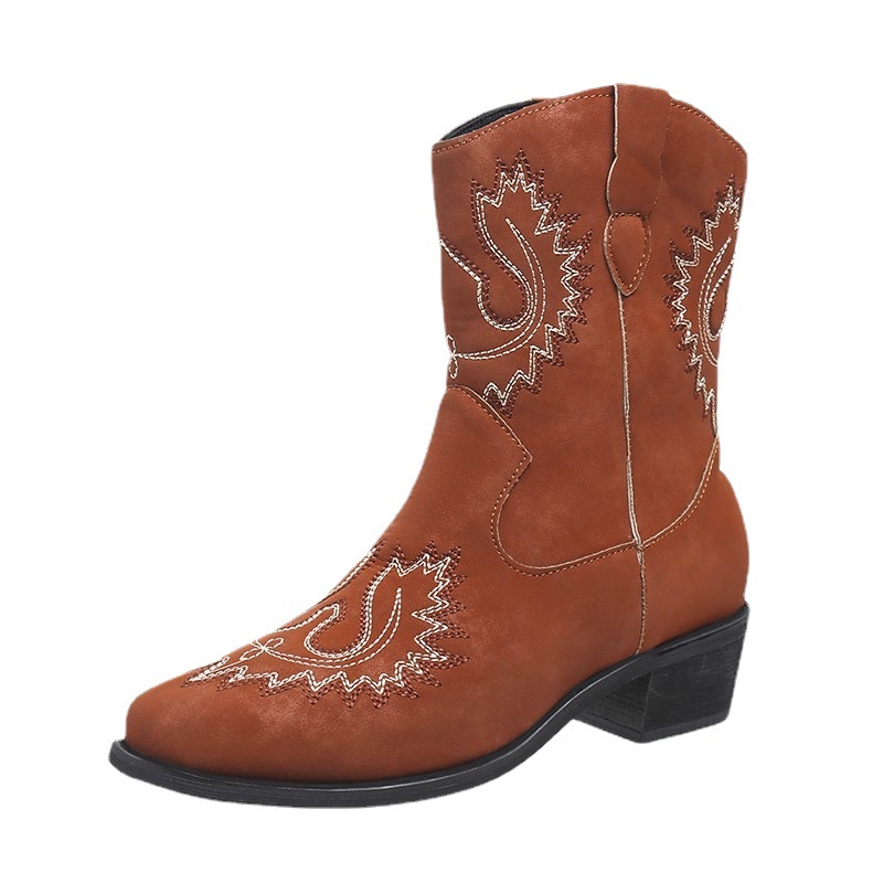 Embroidery Western Boots Chunky Mid Heel Cowboy Boots Women Shoes