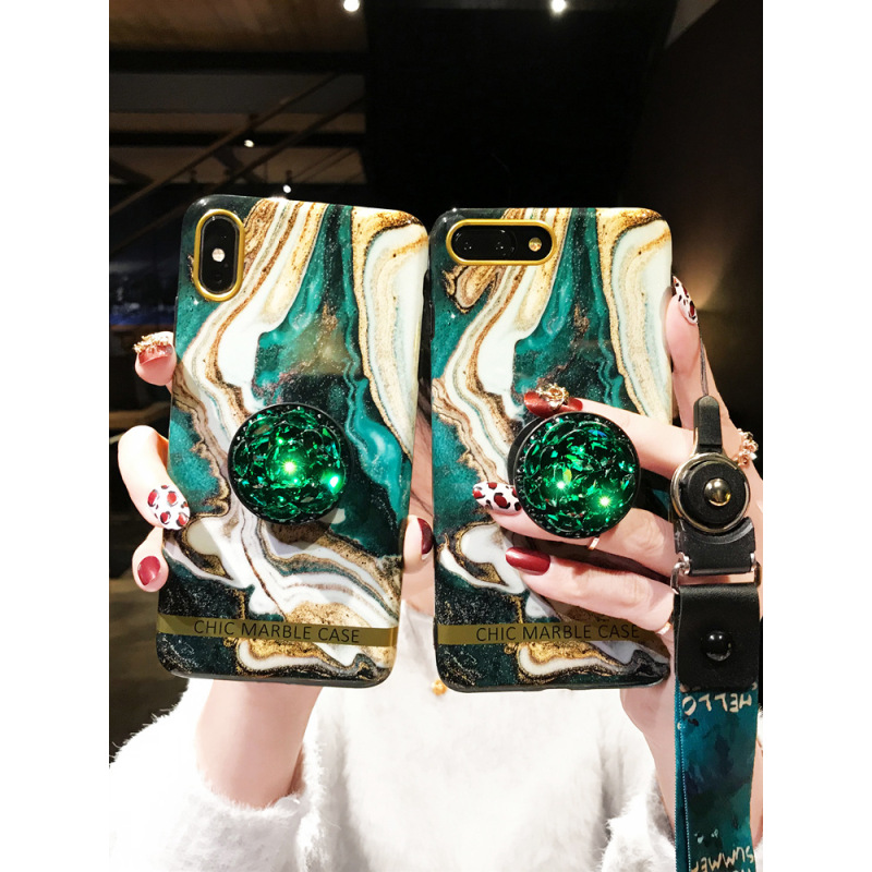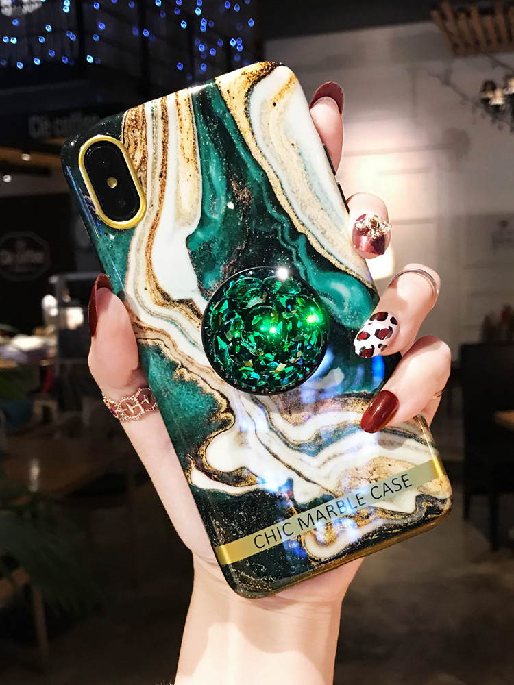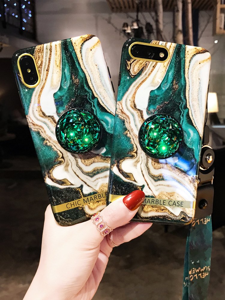 Emerald Marble Phone Case Rhinestone Protective Cover