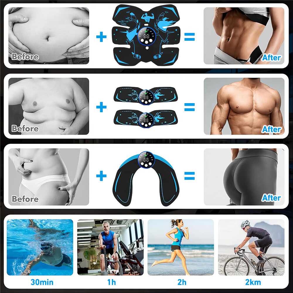 Features:----Electric muscle stimulator: used for abdominal exercises. EMS (Electrical Muscle Stimulation) uses electrical stimulation to transmit electrical signals directly to the muscles, putting the muscles in a trained state.