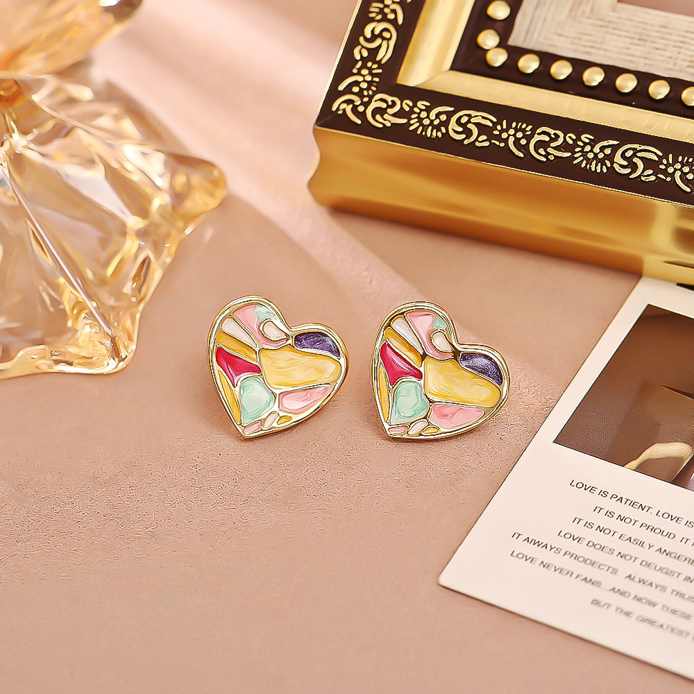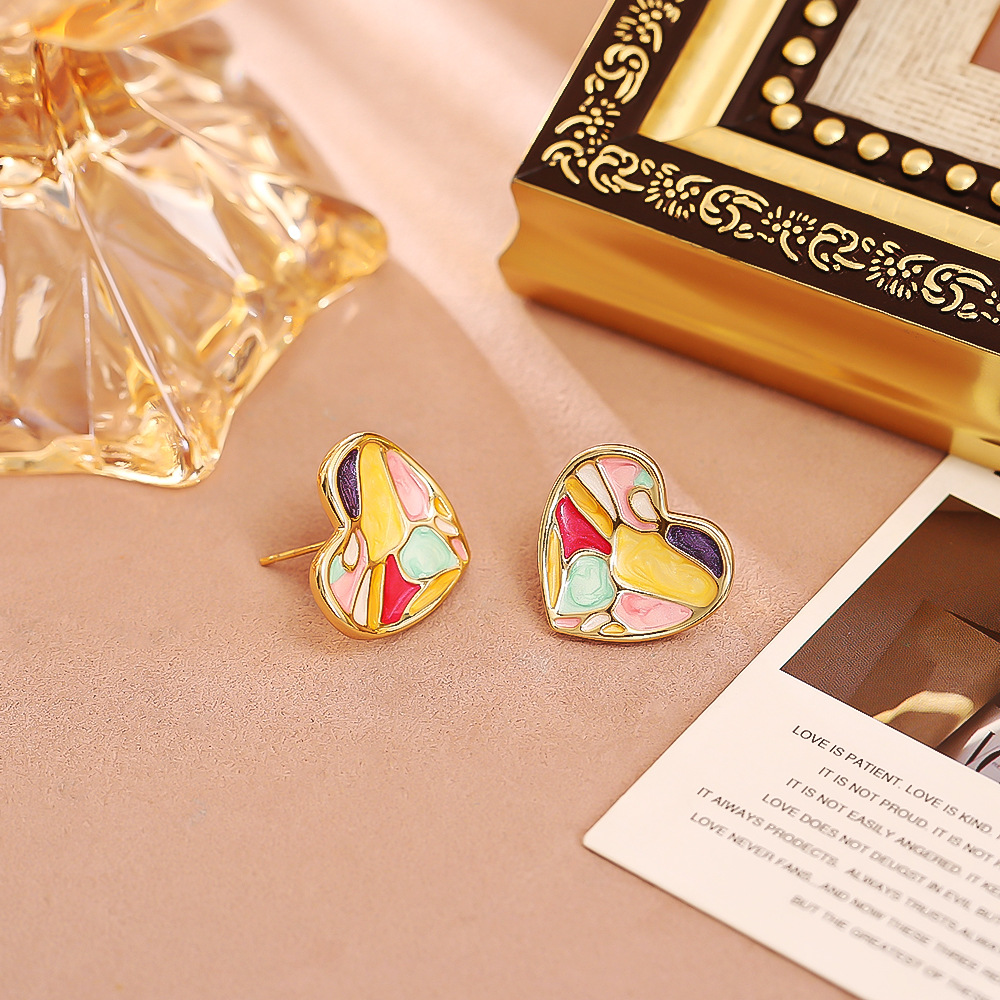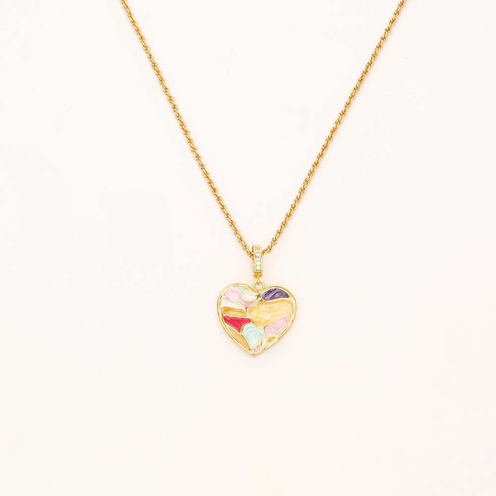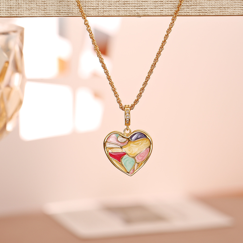Color: Dripped-glaze heart necklace (thickened real gold for long-lasting color), dripped-glaze heart stud earrings (thickened real gold for long-lasting color)