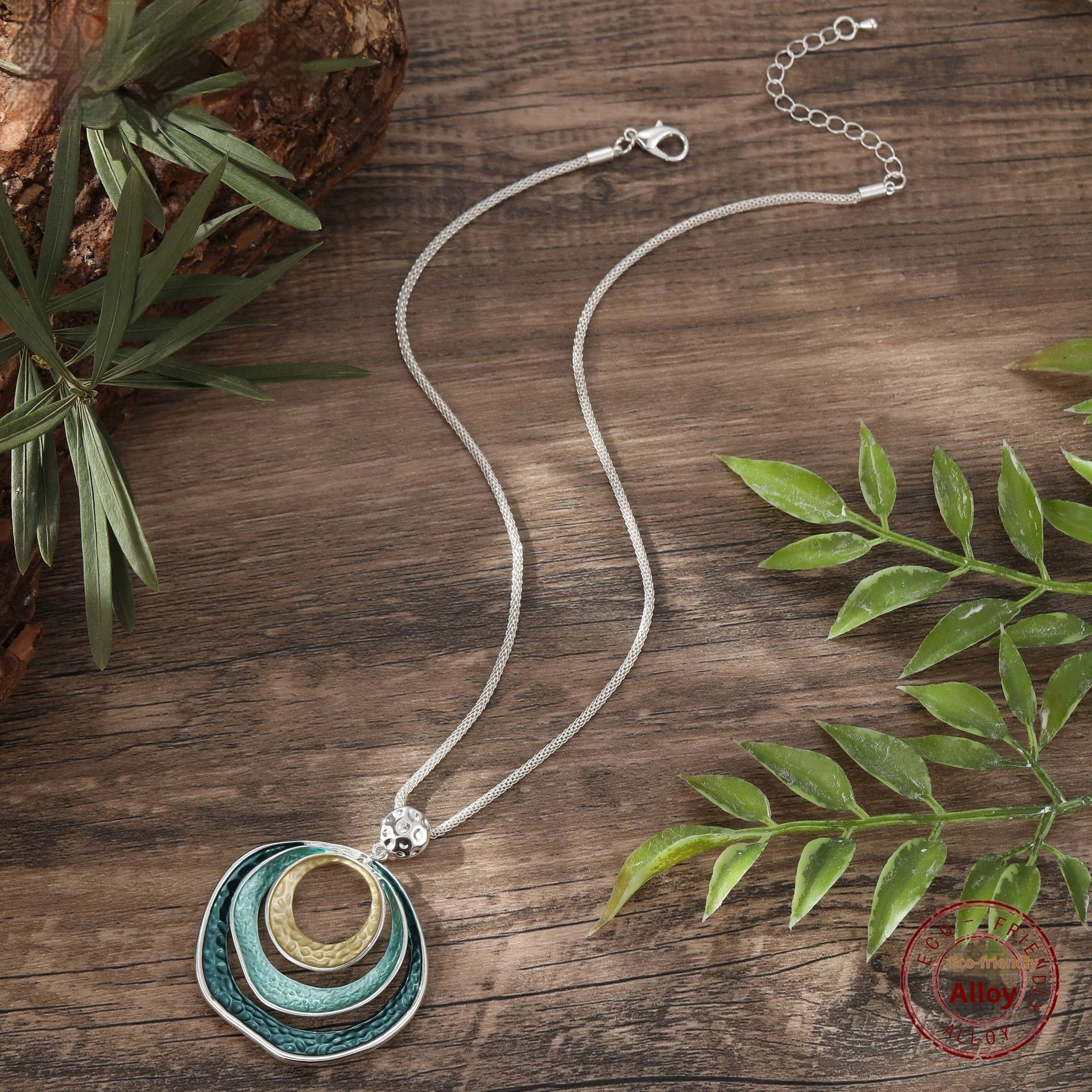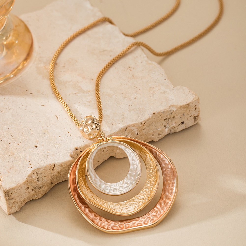 Enamel Geometric Hollow Ring Pendant Exaggerated Geometry Round Women's High-grade Necklace