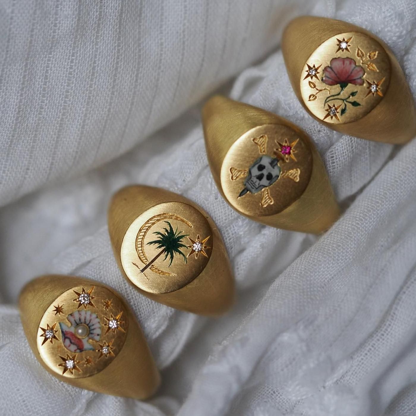 Enamel Ring Women Titanium Steel Plated 18k Gold