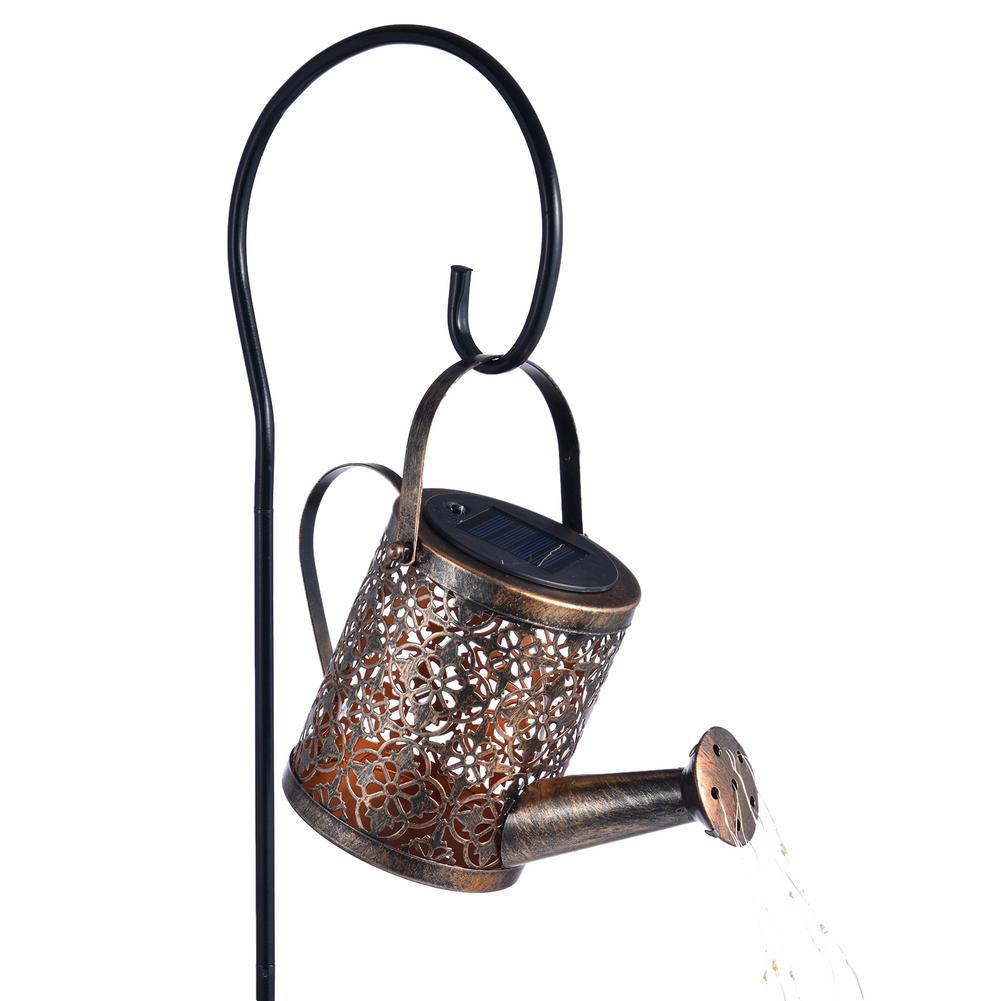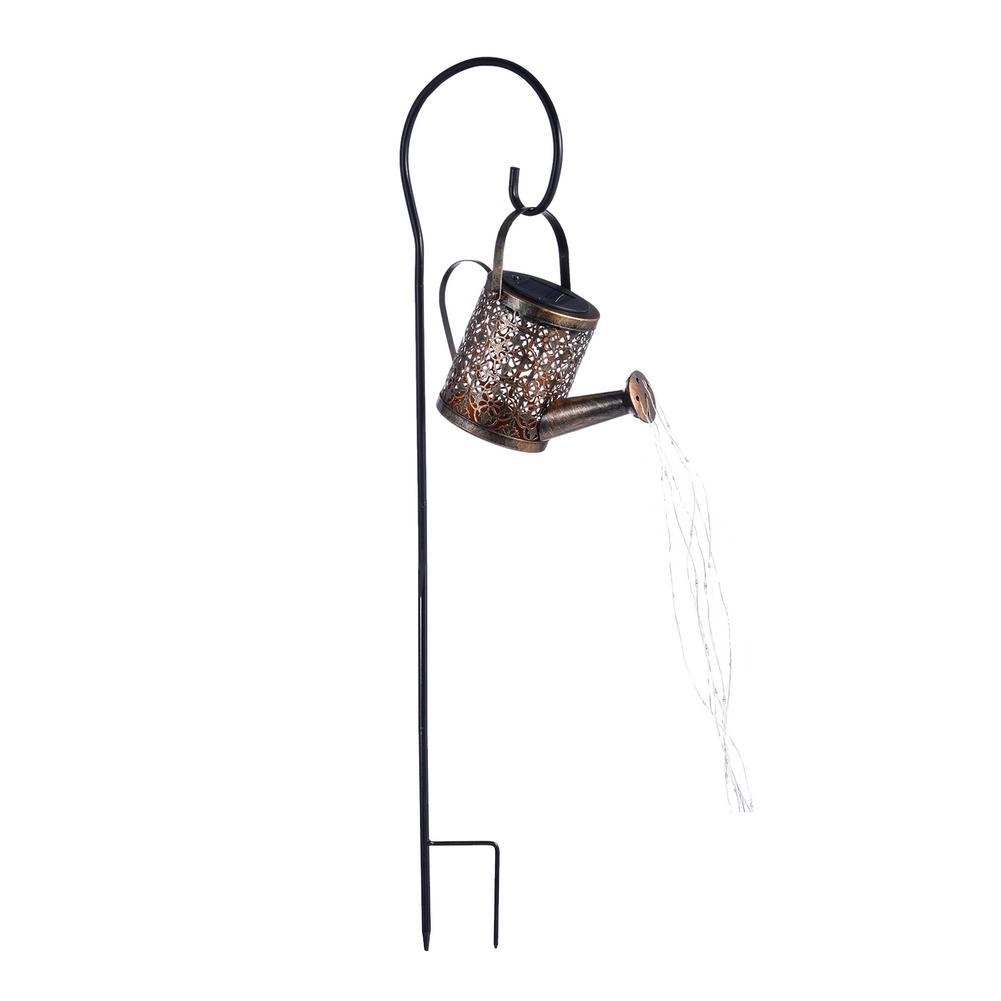 Enchanted Watering Can Outdoor Solar Watering Can Ornament Lamp Garden Art Light Decoration Hollow-out Iron Shower LED Lights