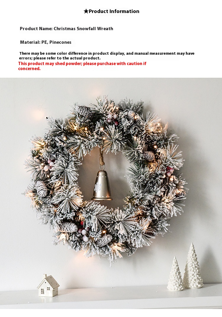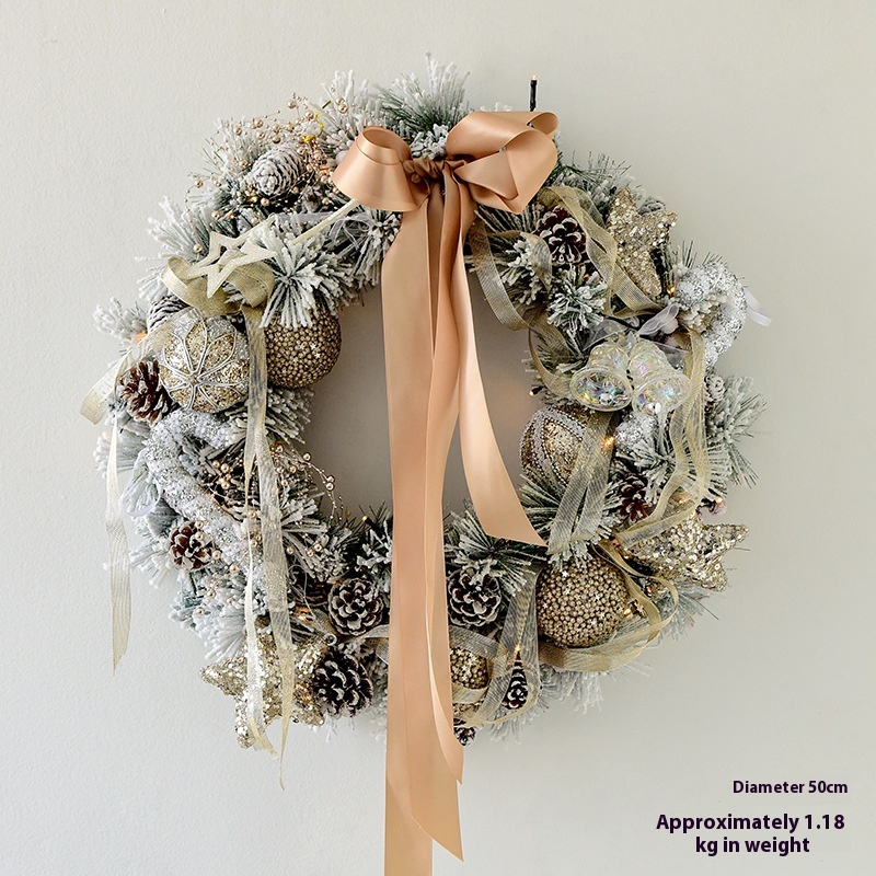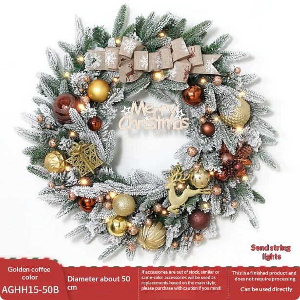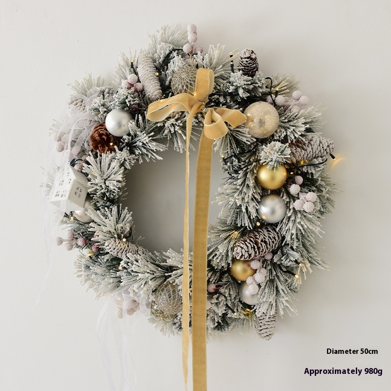Color: 50CM snow wreath (including lights)/880g,50cm American flocking snow wreath [material includes lighting chain], 50cm champagne gold snow wreath [material contains lighting chain], 135CM snow rattan (including lights)/kg,135cm American flocking snow rattan (material package with light),135CM champagne gold planting snow rattan (material including light)