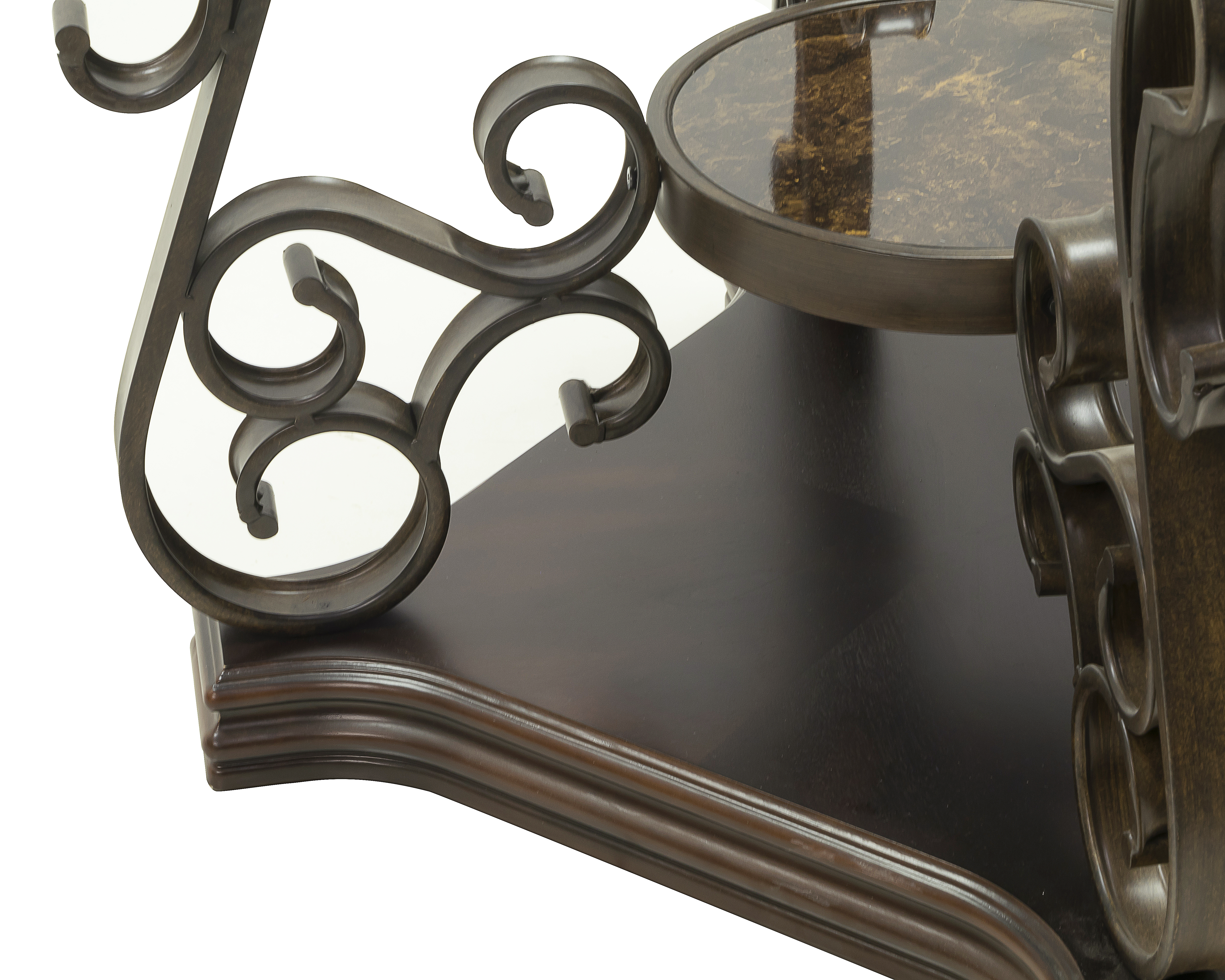 | Material | MDF W/BIRCH VENEER+METAL LEG+CLEAR TEMPLETED GLASS+MDF W/MARBLE PAPER. |